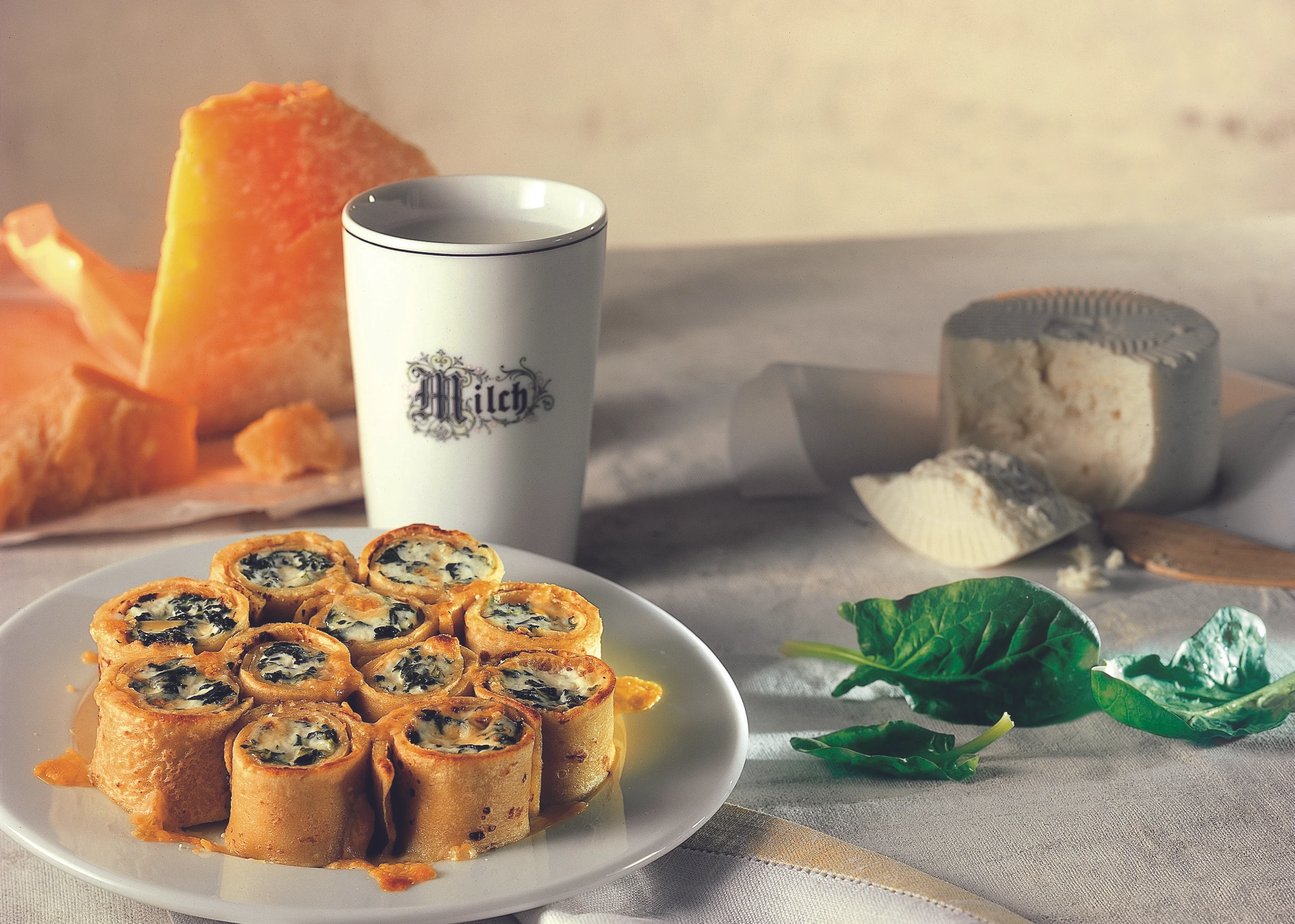 Crêpes mit Ricotta-Spinat-Fülle