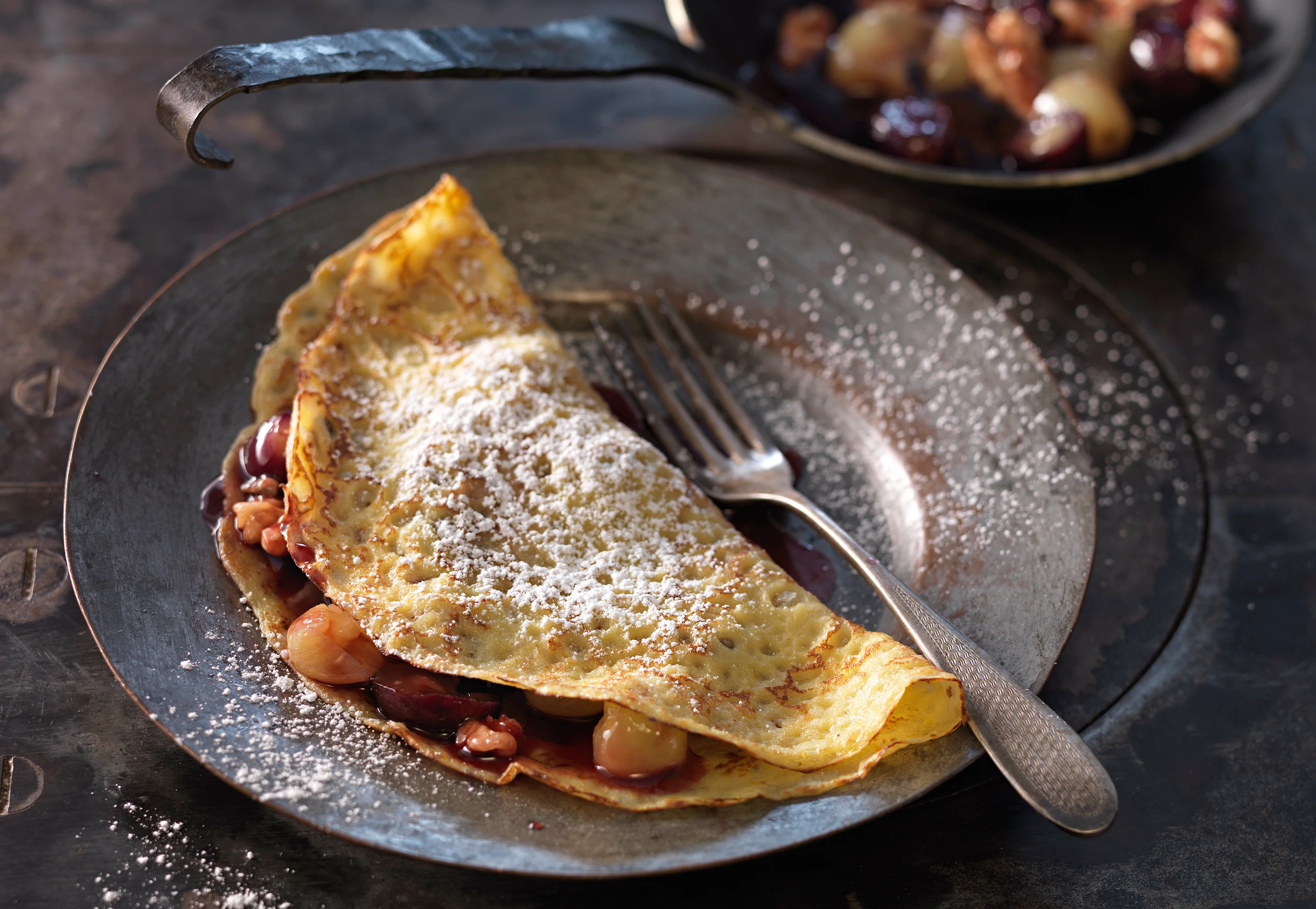 - Crêpes mit der Fülle belegen, zusammenfalten und mit Staubzucker bestreut servieren.