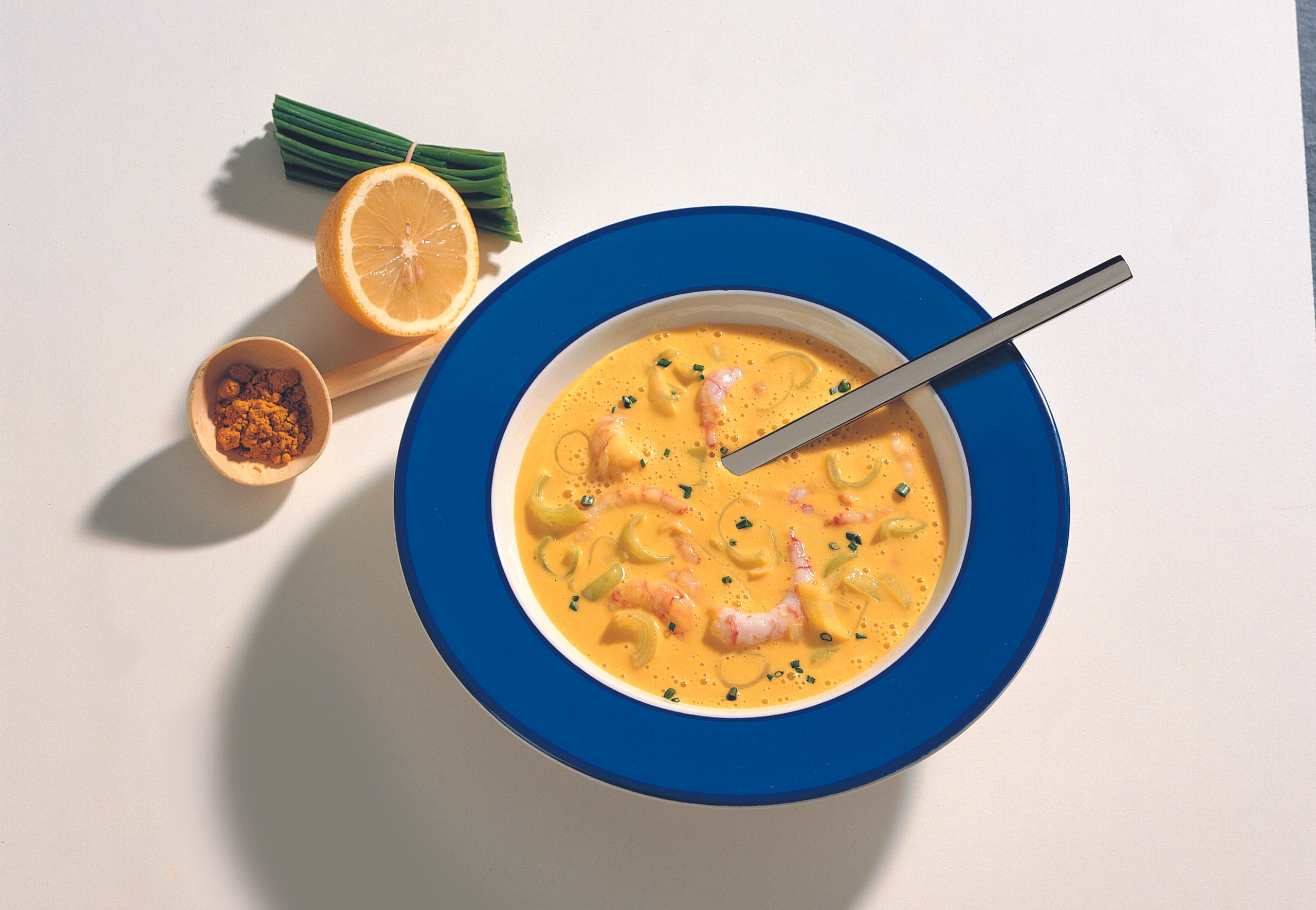 Schnelle Lauch-Currysuppe mit Shrimps
