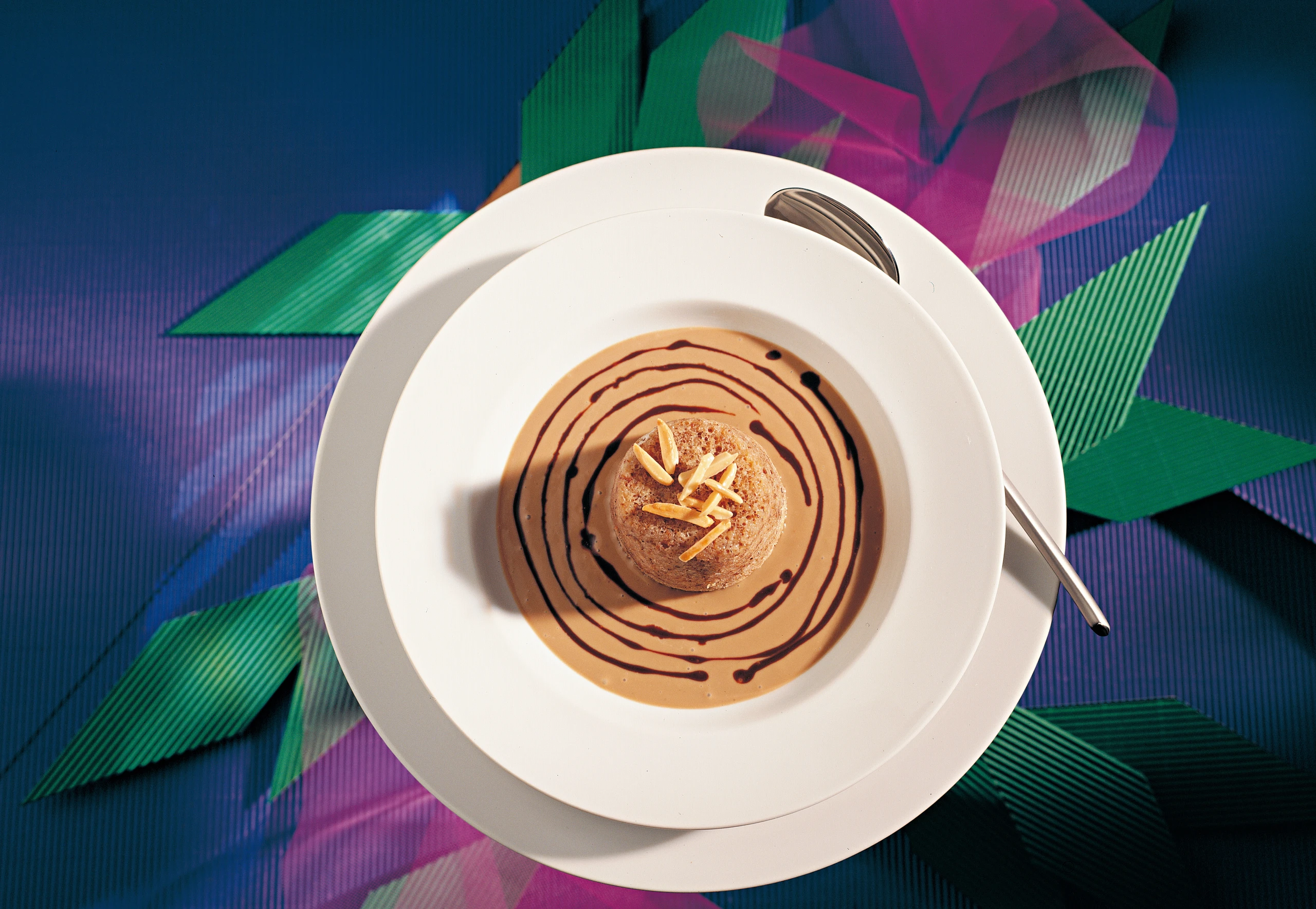 Förmchen aus dem Rohr nehmen, Aufläufe auf Teller stürzen und am besten mit Kaffee-Sauce servieren und mit geschmolzener Schokolade garnieren.