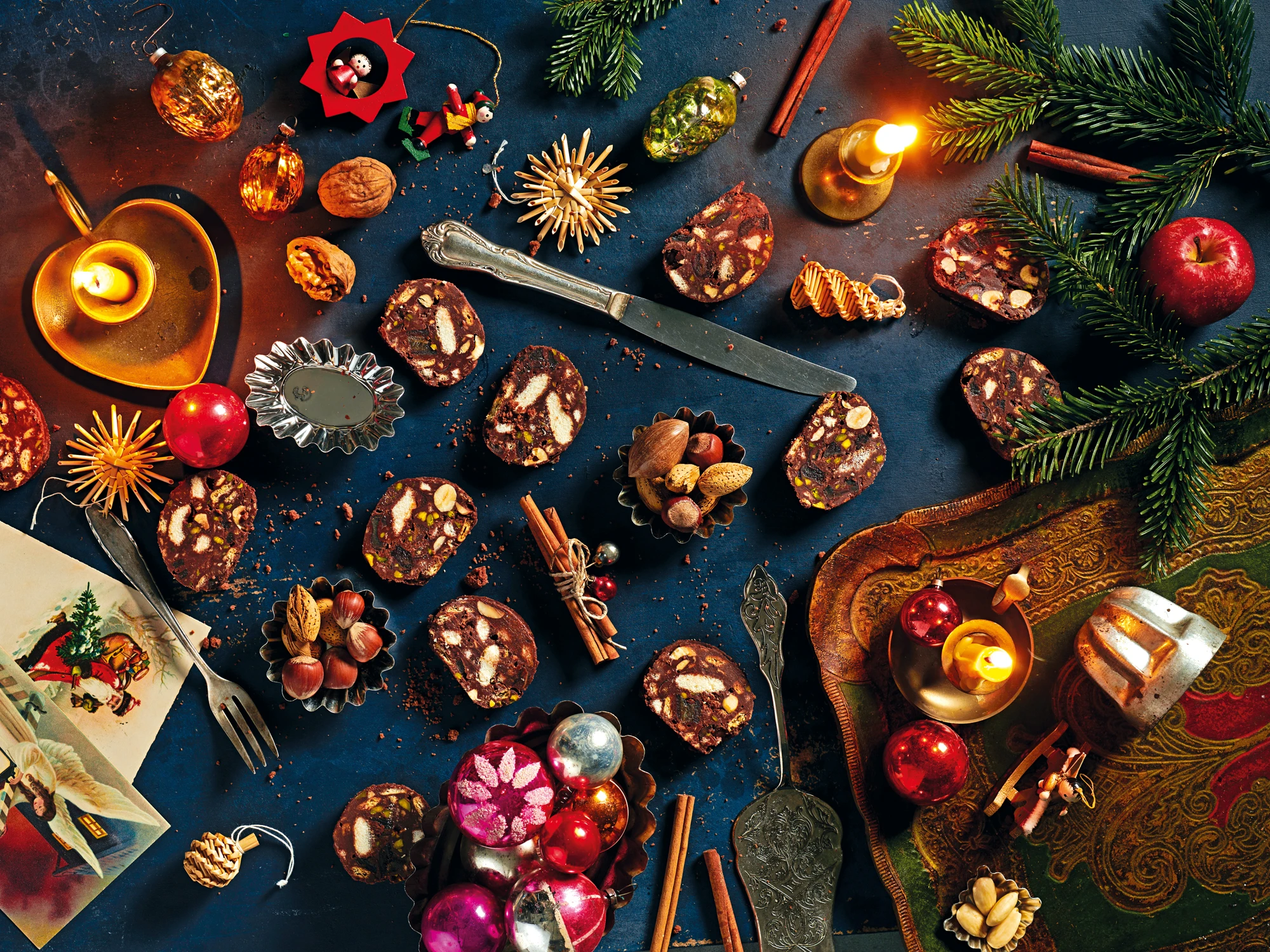 Dieses Rezept lässt sich je nach persönlichem Geschmack ganz einfach variieren, indem man andere Nüsse, Kekse (statt der Biskotten) oder Kuvertüren verwendet.Aus dem Heft: