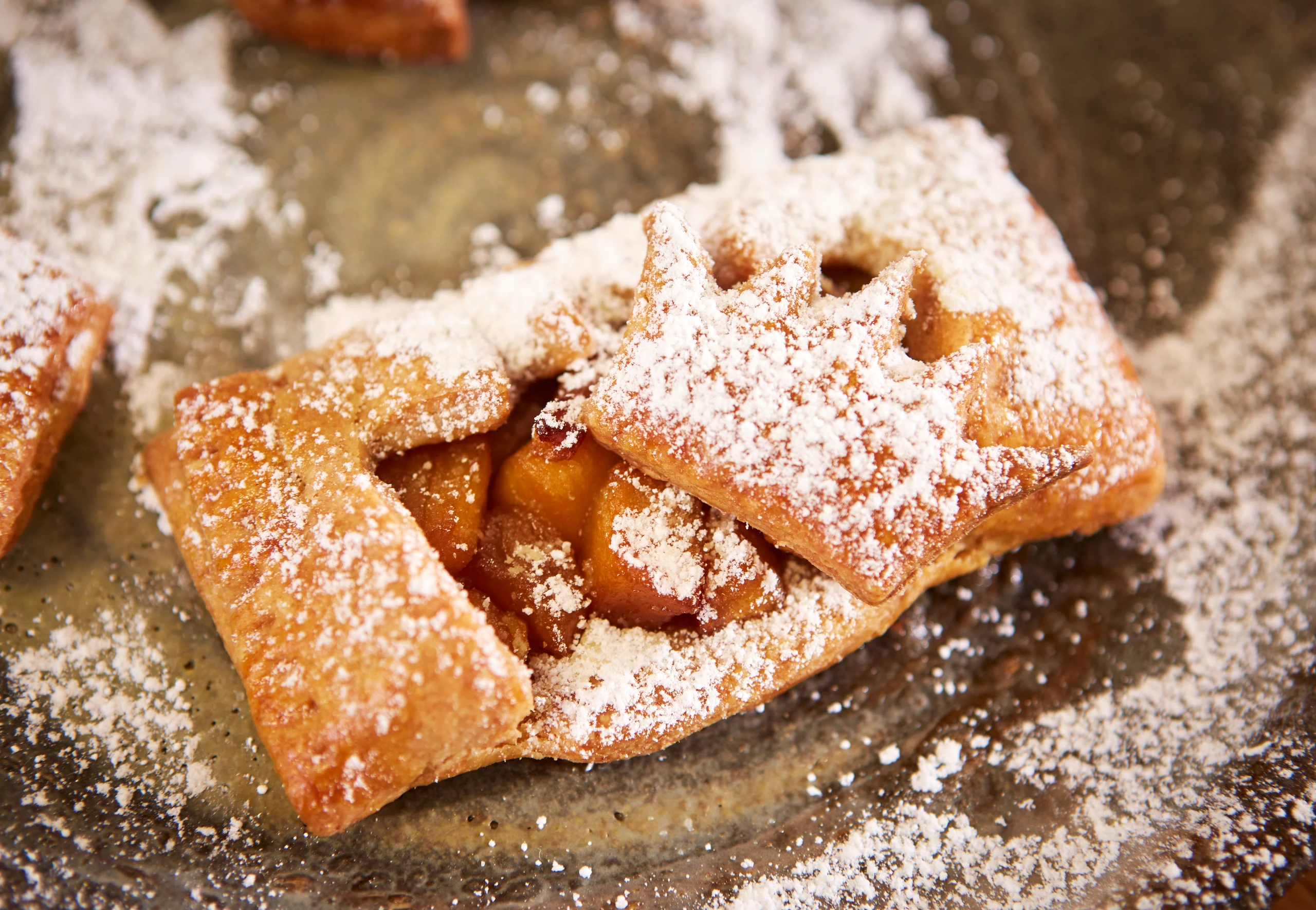 Apfeltaschen auf das Blech legen. Ausgestochene Motive auf die Taschen legen, Taschen dünn mit Ei bestreichen, im Rohr (mittlere Schiene) ca. 20 Minuten backen.