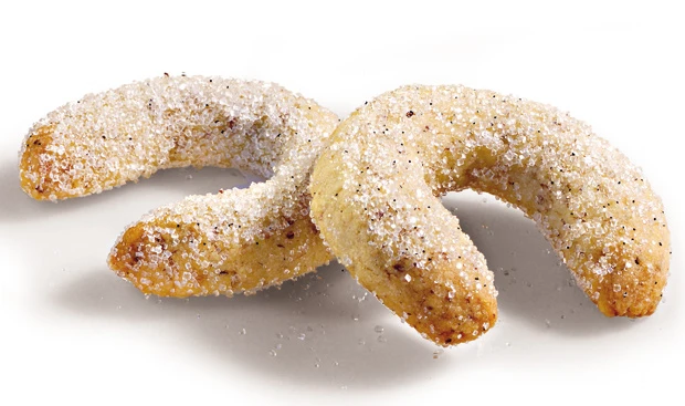 Kipferln noch heiß in der Vanille-Zuckermischung wälzen.
