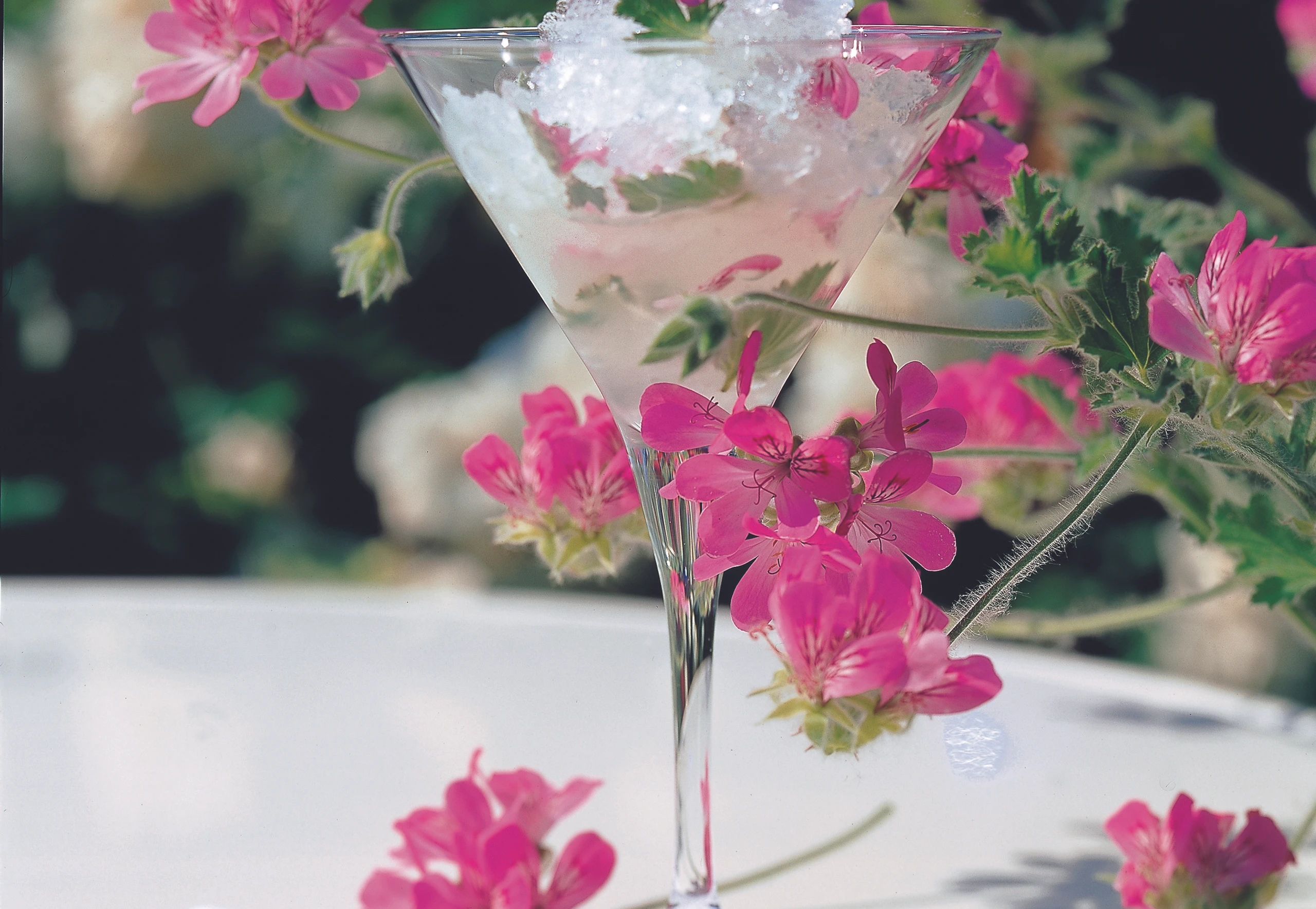 Gusto-Tipp: Duftpelargonie: Sehr unterschiedlich in Farbe und Geschmack sind die zahlreichen Pelargonien-Sorten mit ihren duftenden Blättern und Blüten. Besonders aromatisch schmeckt die weiß blühende Zitronenpelargonie oder die hier abgebildete „Pink Capitatum“.