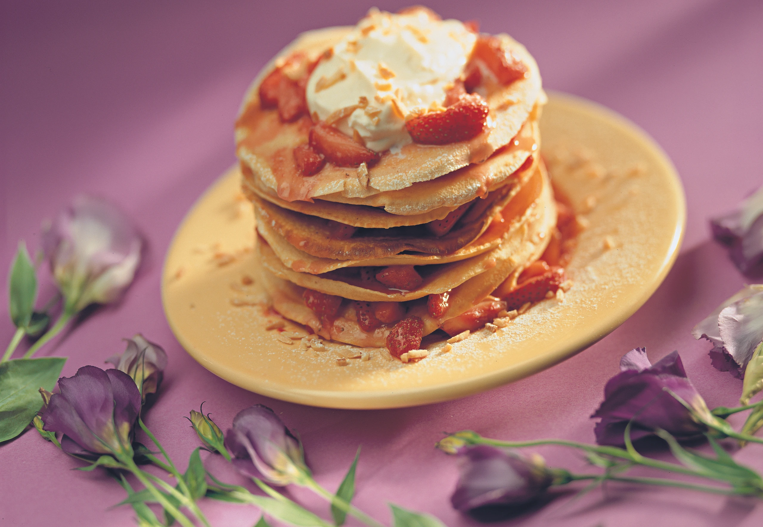 - Obers mit 1 TL Staubzucker mischen und dickcremig schlagen. Palatschinken abwechselnd mit den marinierten Erdbeeren übereinander setzen, mit geschlagenem Obers, gerösteten Mandeln und Staubzucker garnieren.