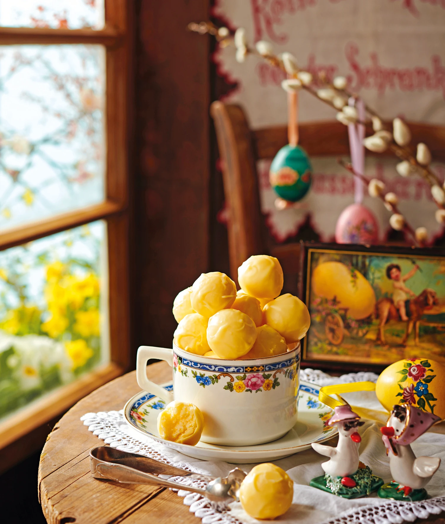 Mit einem Teelöffel Stücke abstechen, zu Pralinen formen und für