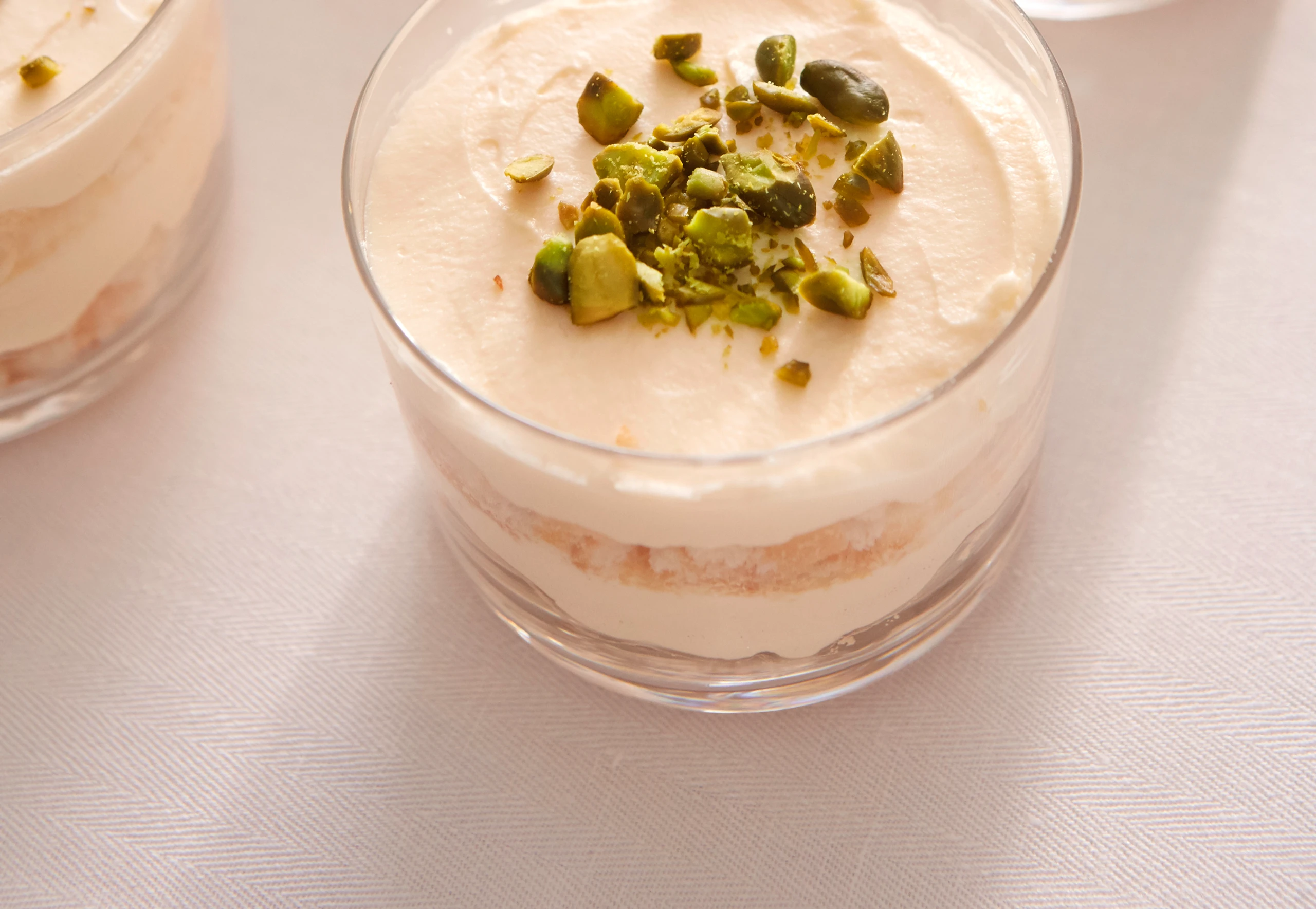 Tiramisu vor dem Servieren mit Pistazien bestreuen.