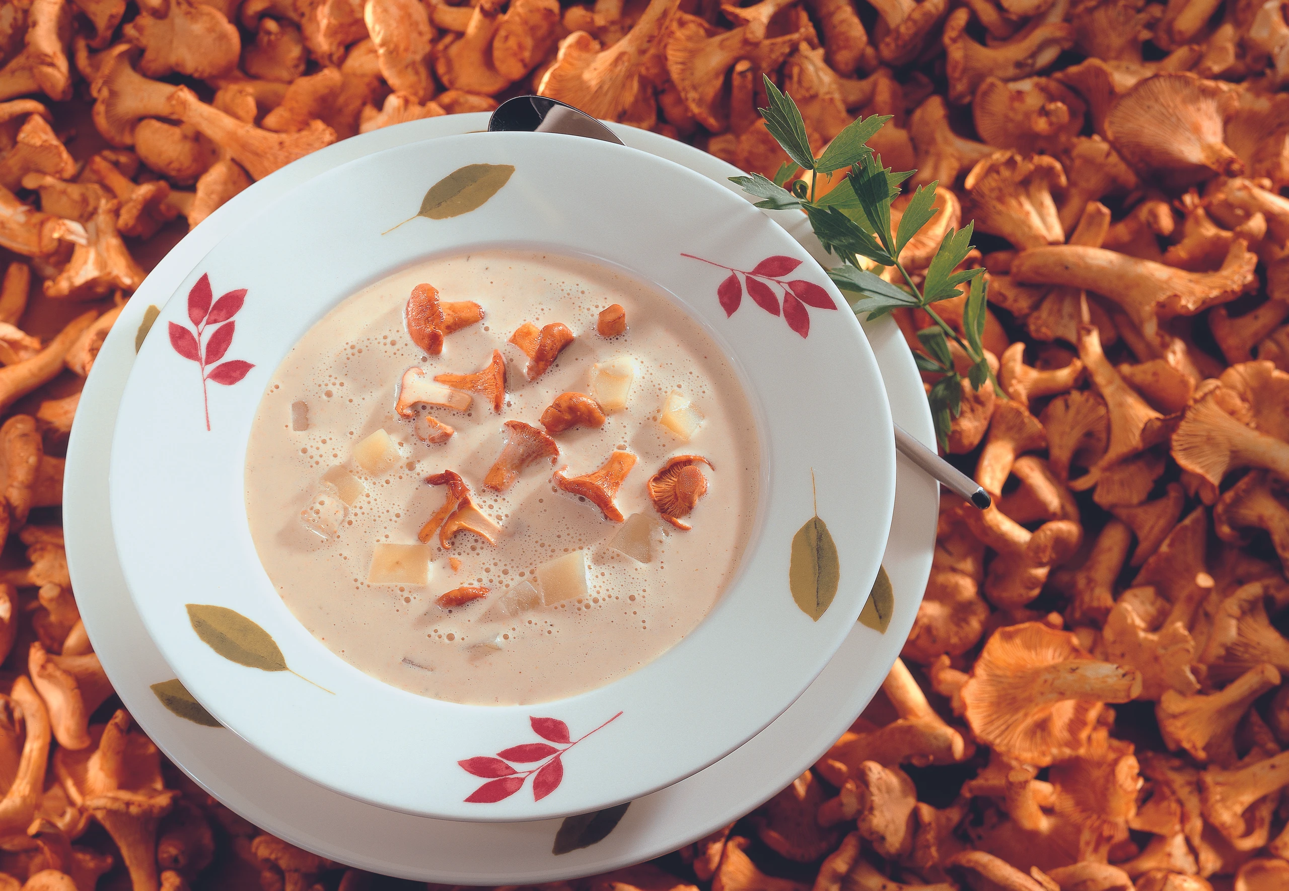 Eierschwammerlsuppe mit Erdäpfeln und Lauch