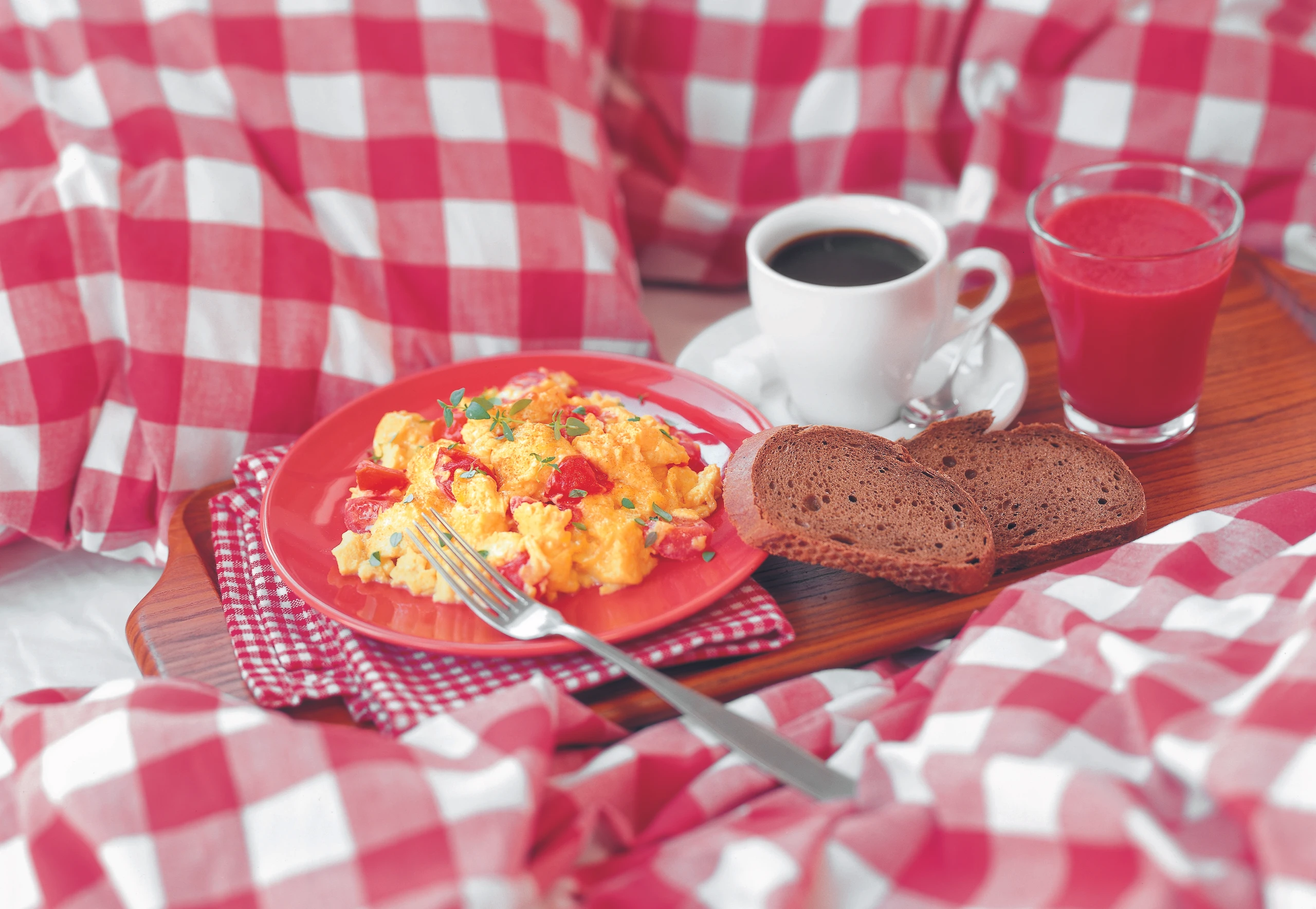 - In einer Pfanne Butter erhitzen, Ei-Mischung hineinleeren, Parmesan und Paradeiser darüber verteilen. Etwas stocken lassen und mit einem Kochlöffel verrühren. Vor dem Servieren mit Cayennepfeffer und Thymianblättchen bestreuen.