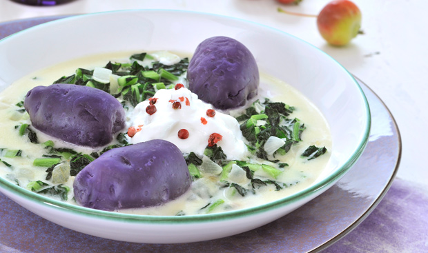 - Für die Einbrenn Knoblauch schälen und fein hacken. In einer kleinen beschichteten Pfanne Öl erhitzen, Mehl zugeben und unter Rühren hell bräunen. Vom Herd nehmen, Knoblauch einrühren. Einbrenn zum Kohl geben, umrühren und einige Minuten verkochen lassen, mit Salz abschmecken. Schaffrischkäse cremig mixen. Kohl mit den Erdäpfeln anrichten, mit Schafkäse garnieren und mit Rosa Beeren bestreut servieren.