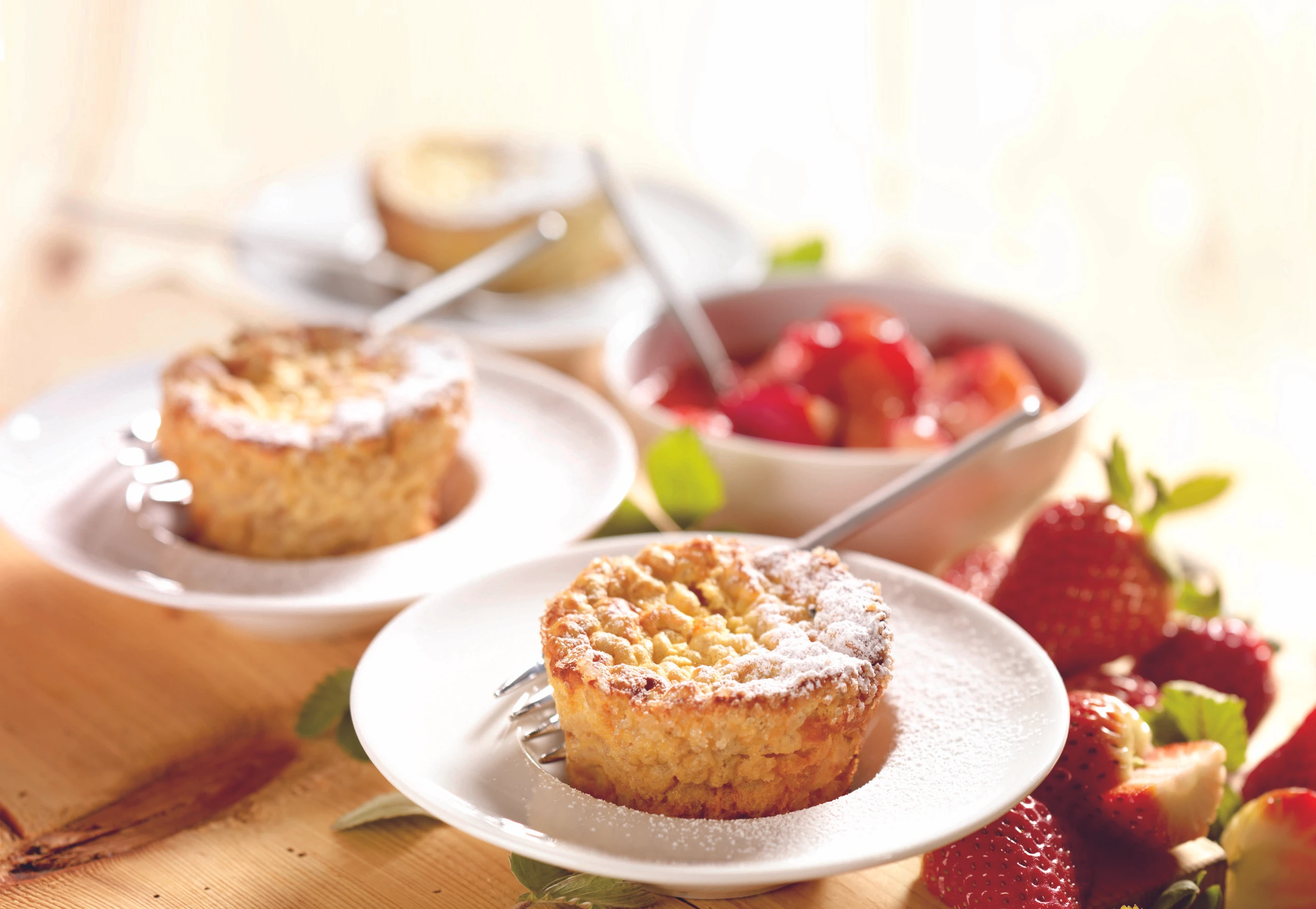 - Rohr auf 180°C vorheizen. Eiklar kurz aufschlagen, Zucker einrieseln lassen, Schnee ausschlagen. Die Hälfte vom Schnee unter den Reis mischen, zweite Hälfte vorsichtig unterheben. Masse in die Formen füllen und ca. 15 Minuten im Rohr (mittlere Schiene) backen. Auflauf mit den Erdbeeren servieren.