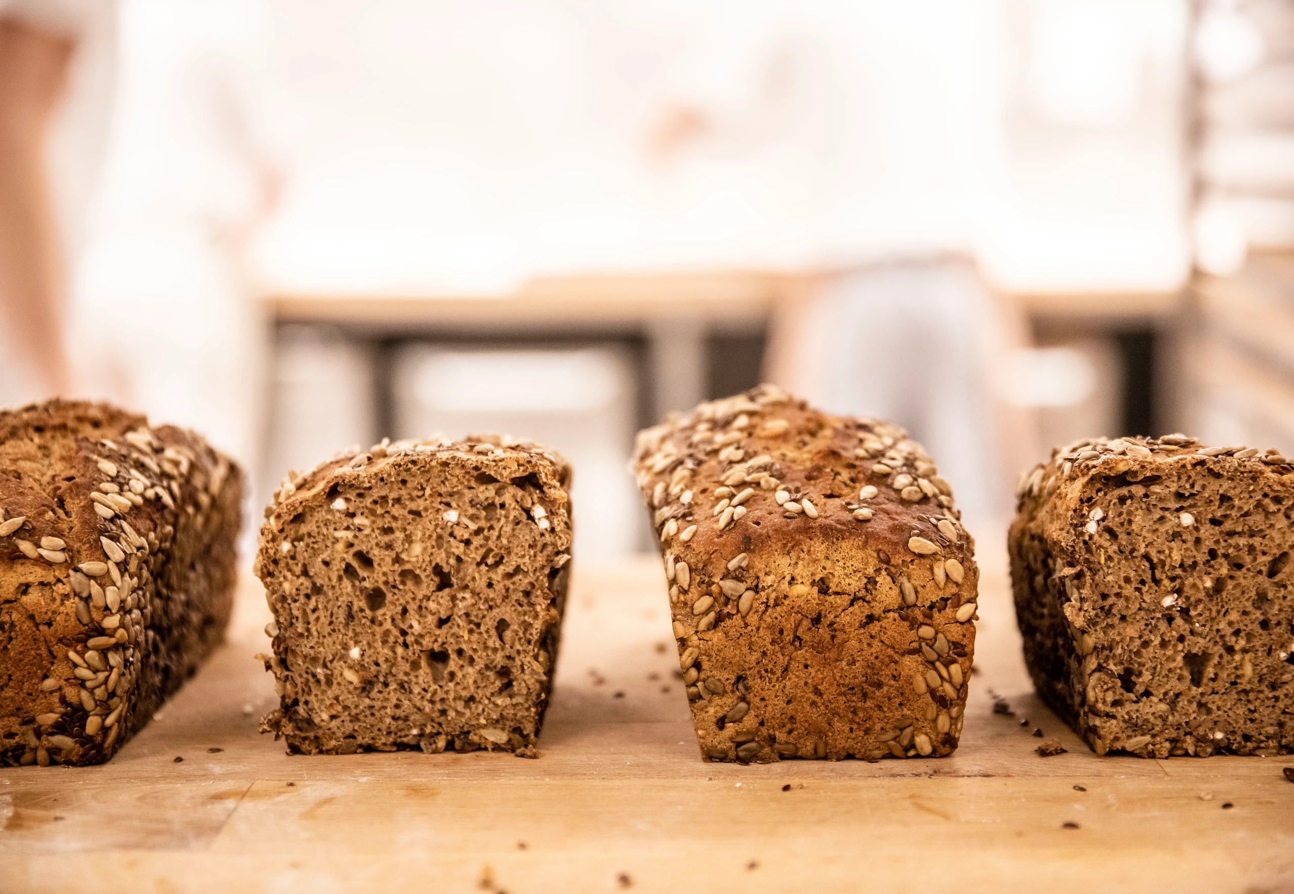 Brote aus dem Rohr nehmen und ca. 30 Minuten in der Form rasten lassen. Brote aus den Formen stürzen und auskühlen lassen.