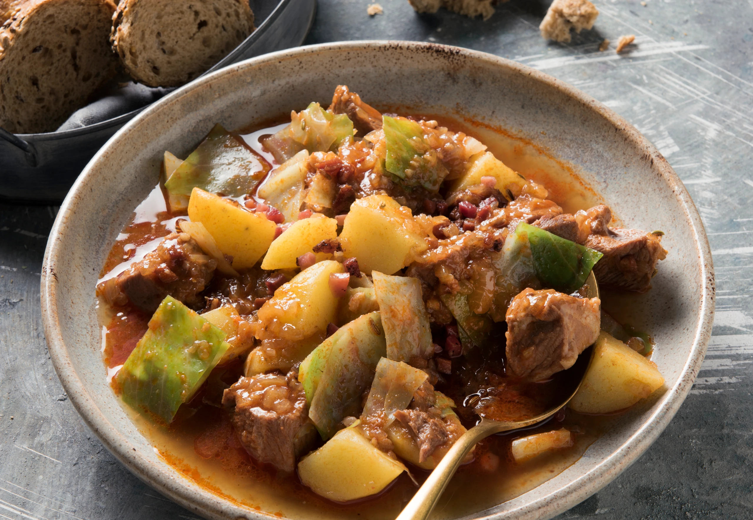Eintopf mit Kraut, Schweinefleisch und Erdäpfeln