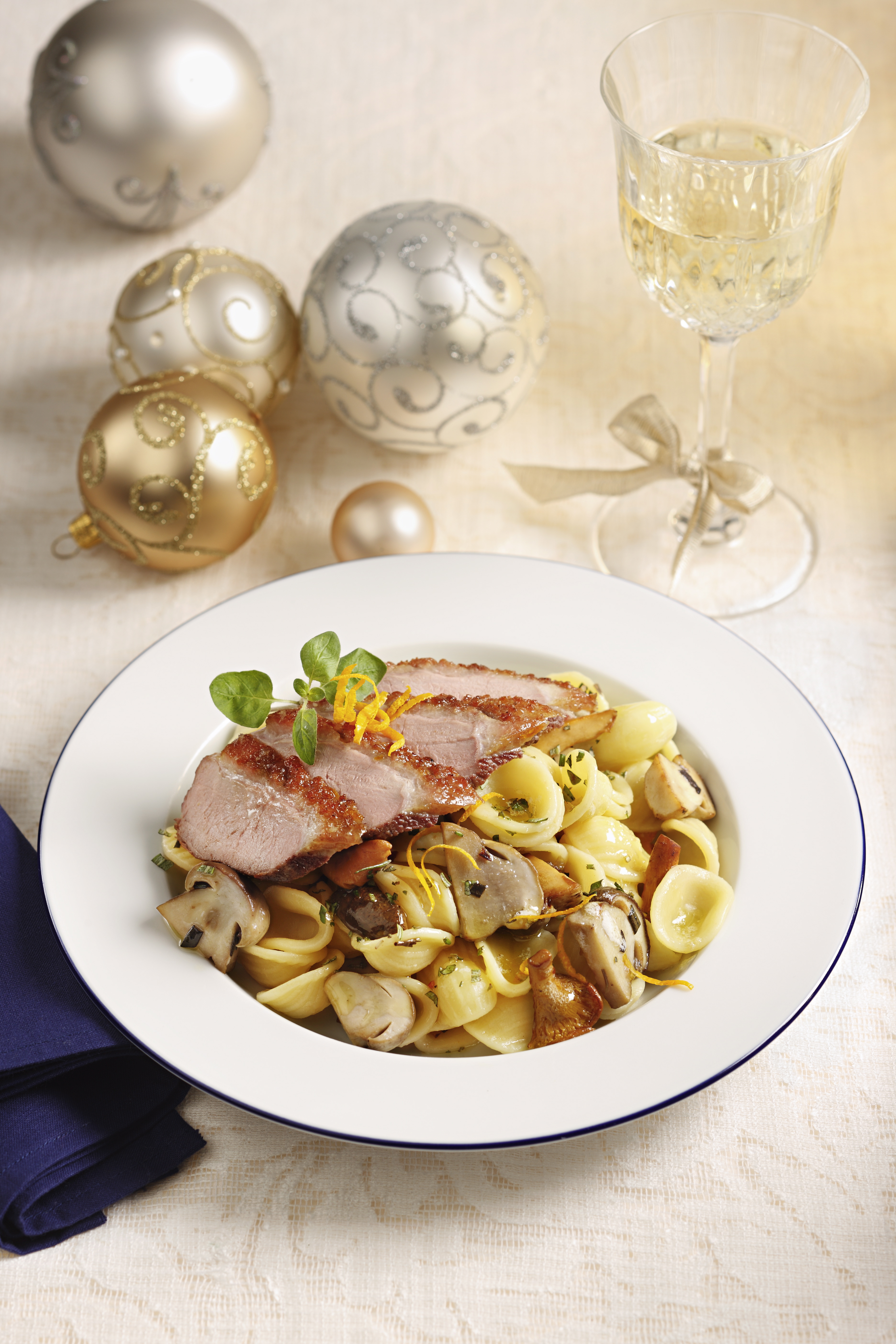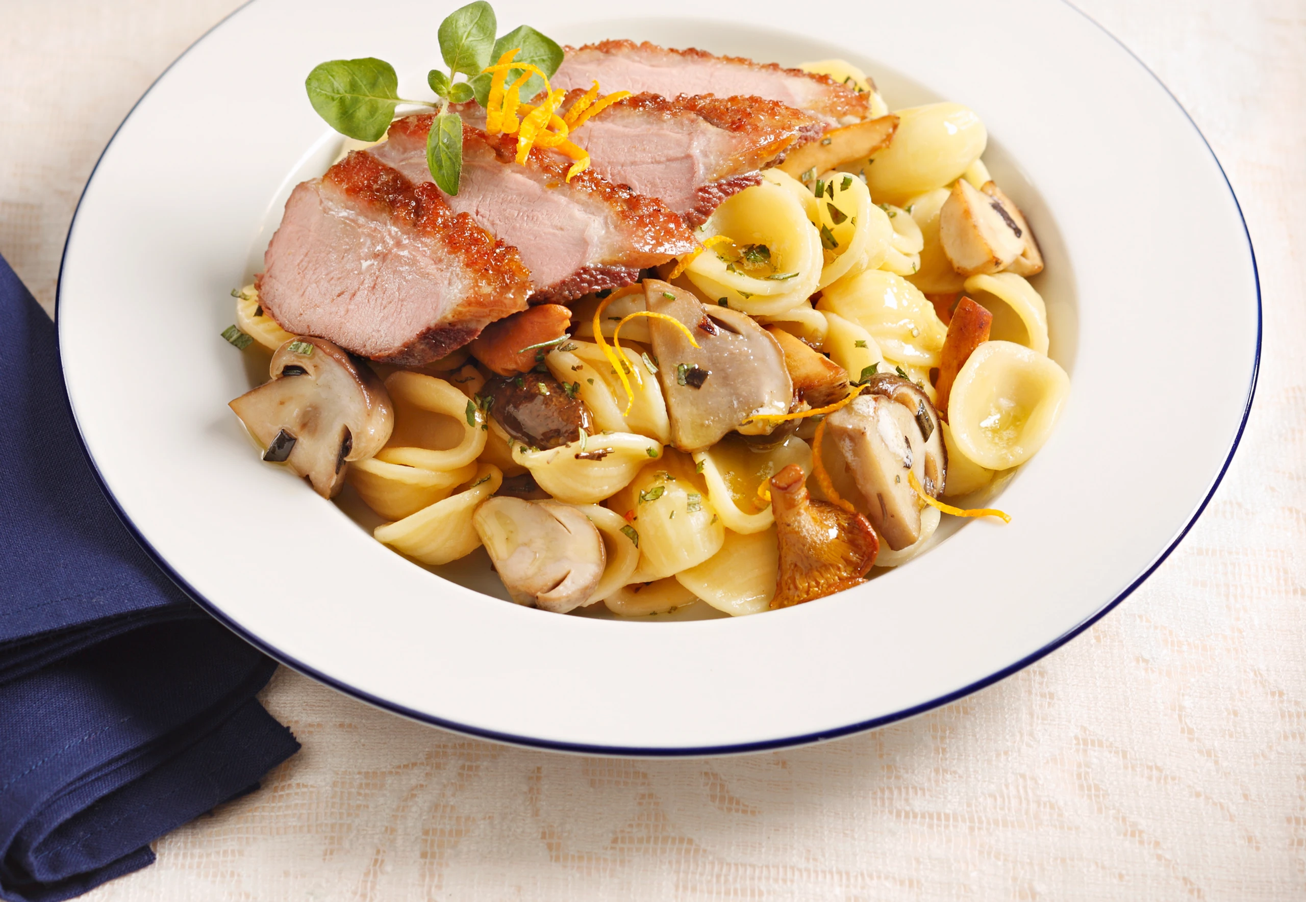 Glasierte Entenbrust auf Pilz-Orecchiette