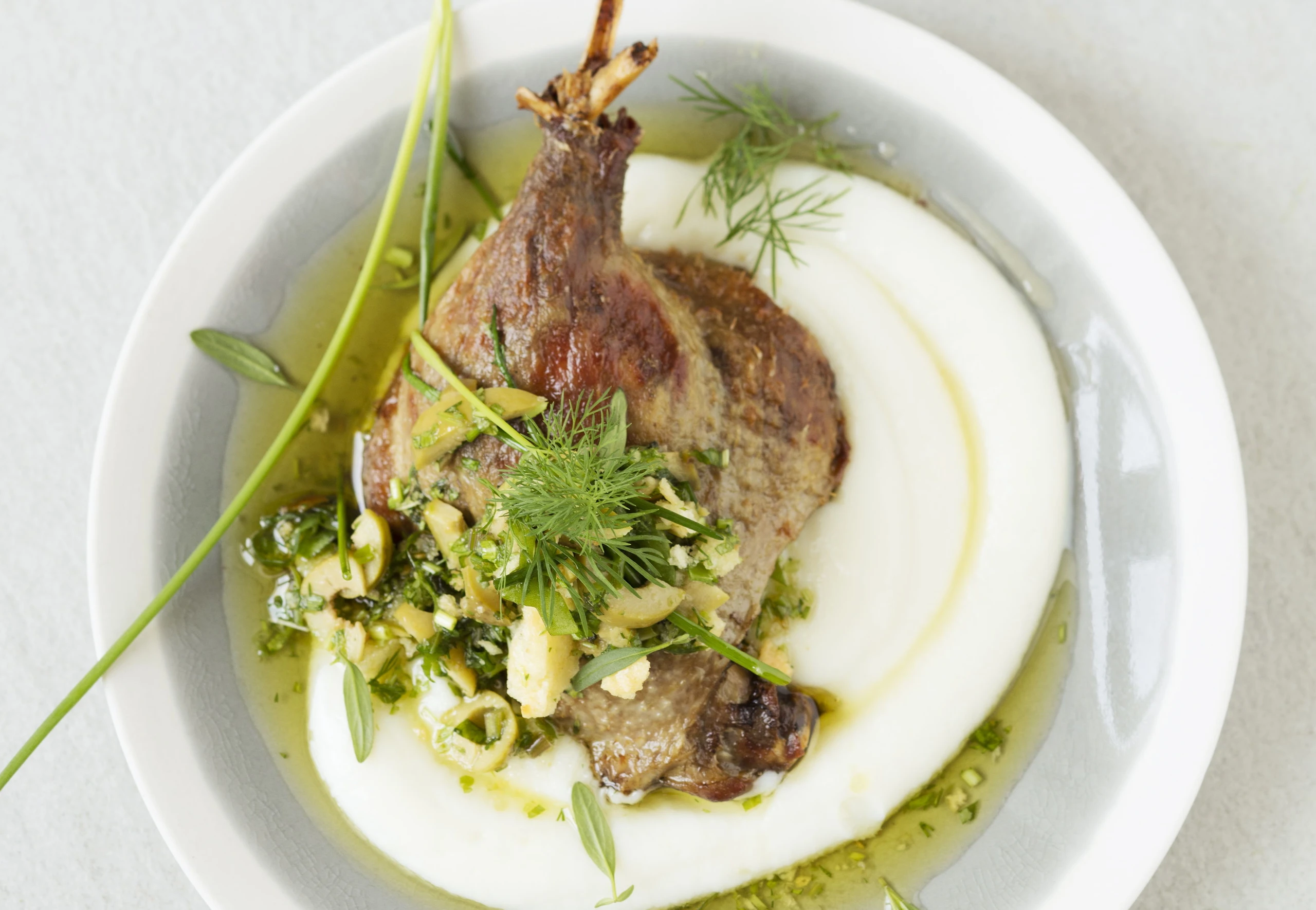 Entenkeule mit Oliven-Kräuter-Pistou