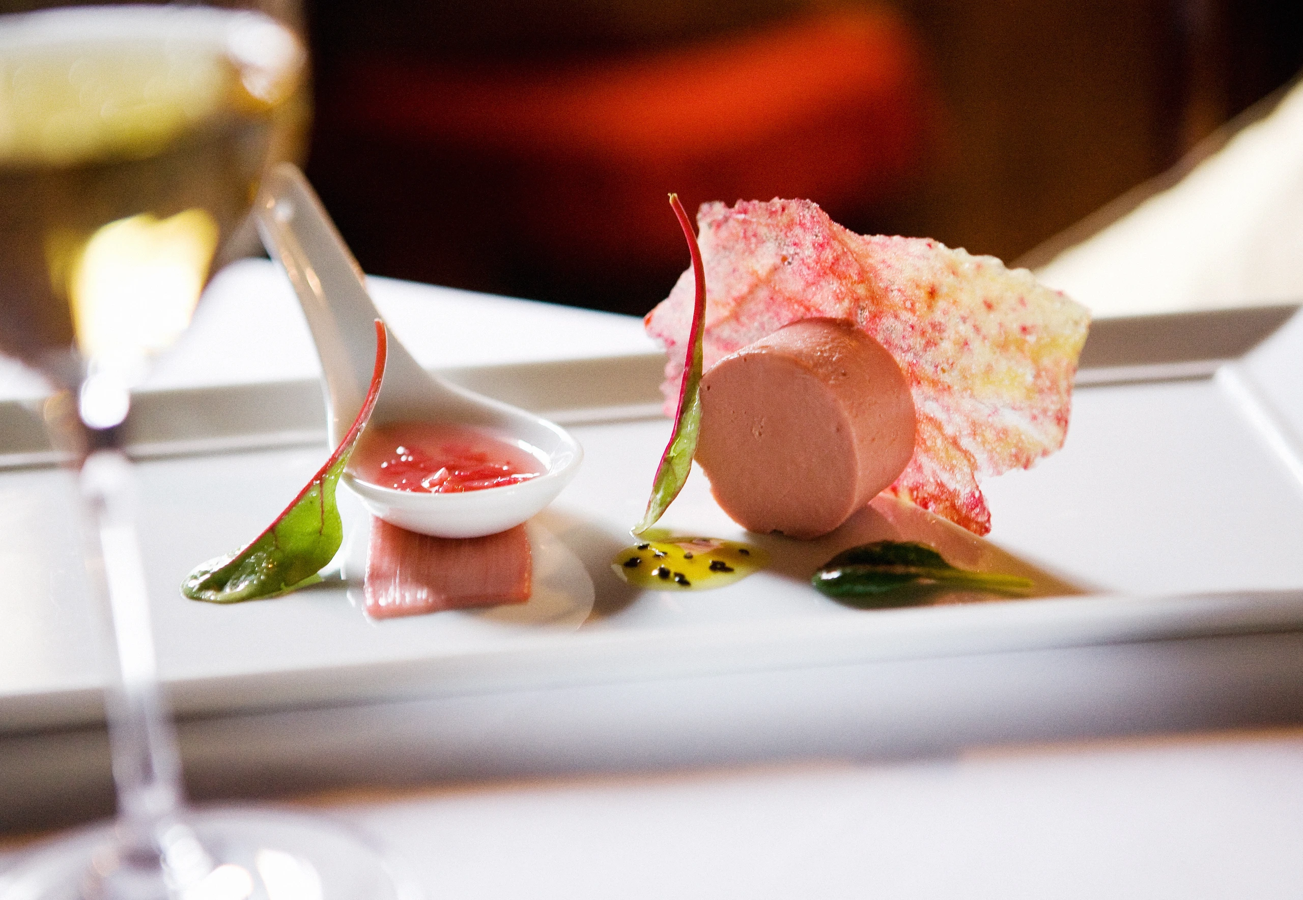 Entenleberterrine mit Rhabarber-Chutney und Erdäpfelblättern