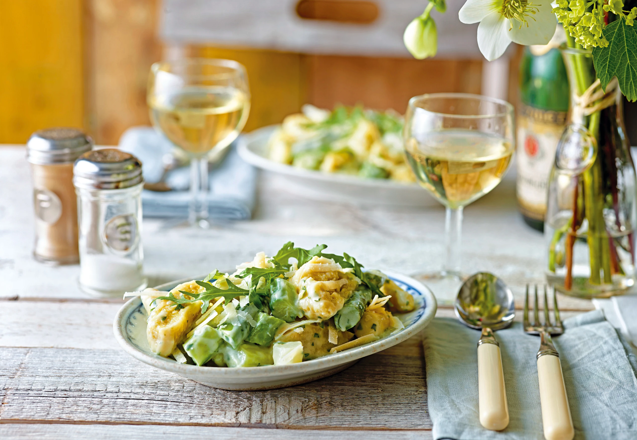 Erbsen-Gnocchi mit Spargel und Käse-Rucolasauce