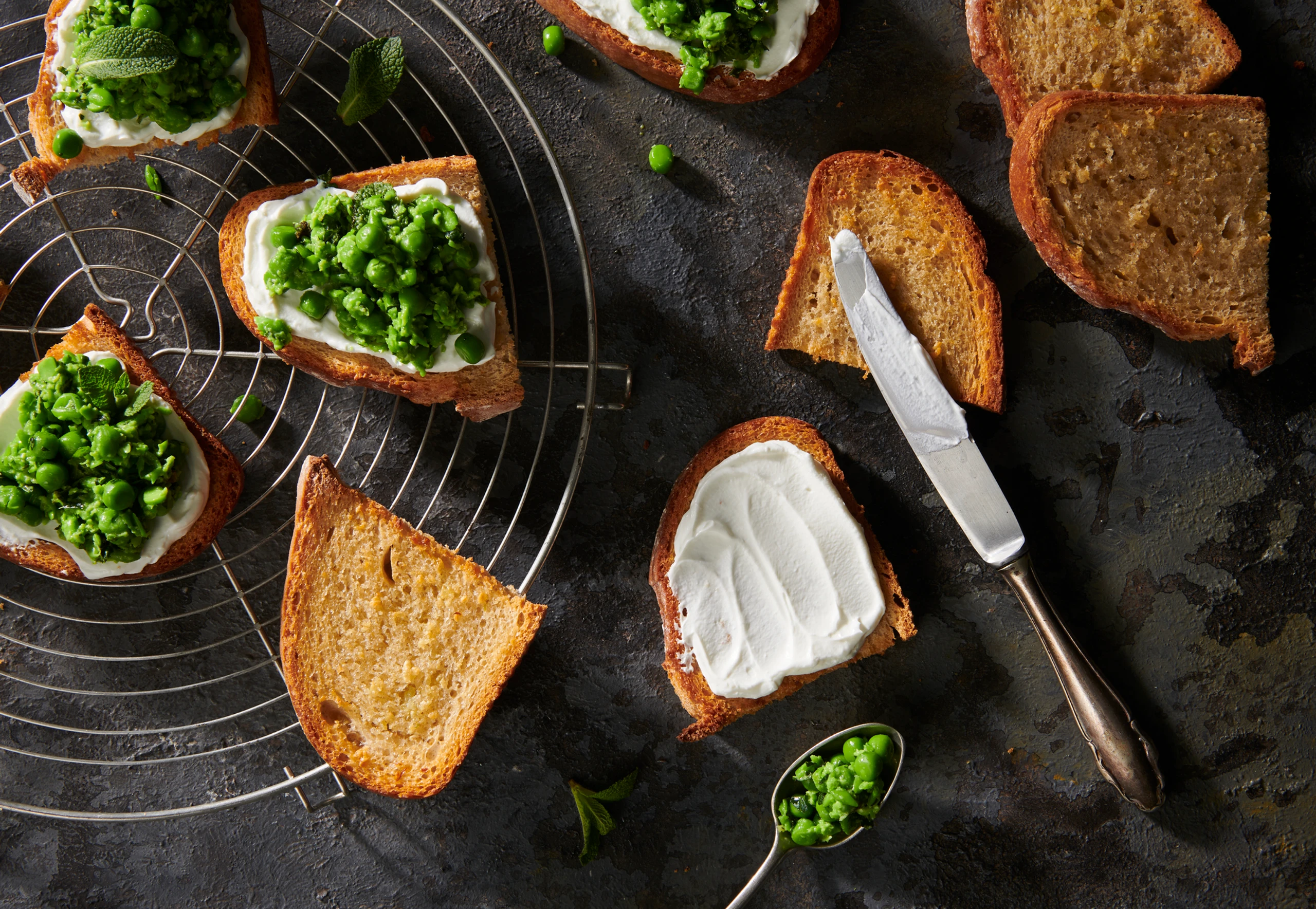Erbsen-Minze-Bruschetta mit Ziegenfrischkäse