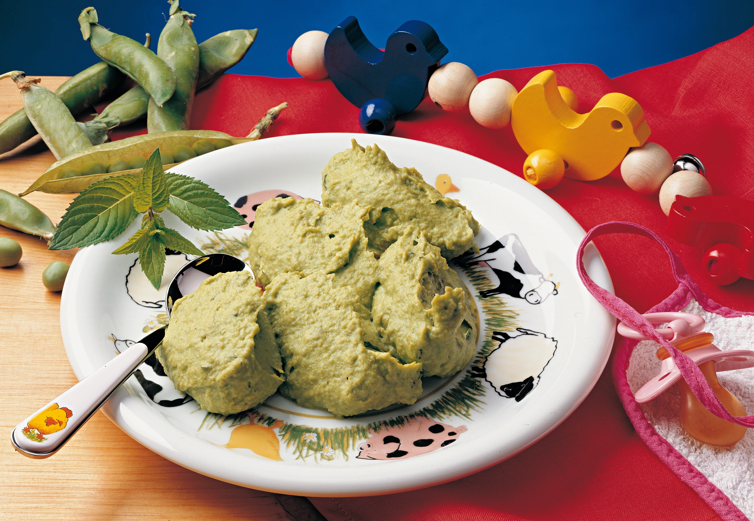Gemüse fein pürieren, restliche Butter und die gehackte Minze einrühren.