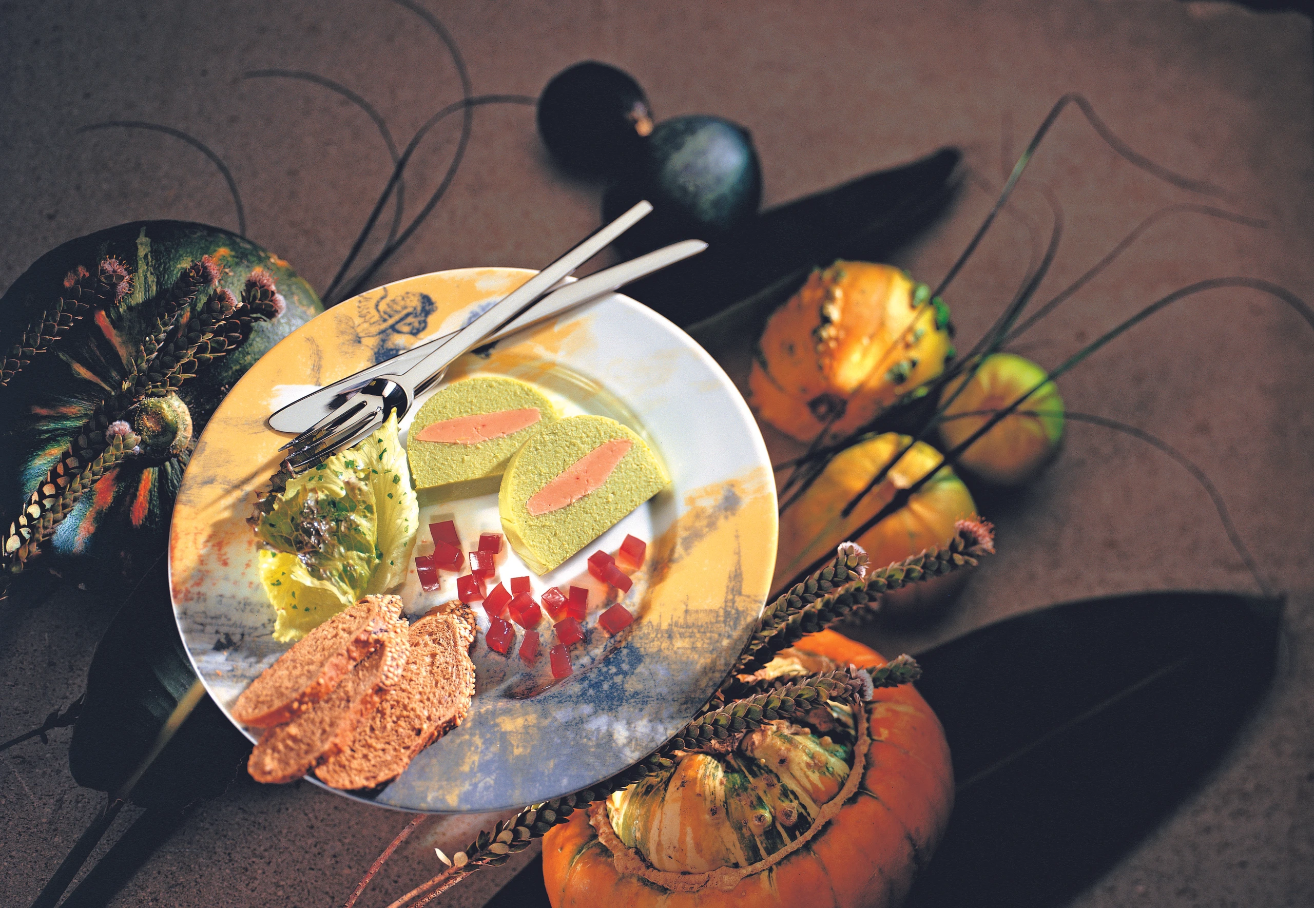 Terrine aus der Form stürzen und die Folie entfernen. Terrine in Scheiben schneiden und mit dem Portweingelee anrichten. Die Terrine eventuell zusätzlich mit Blattsalaten garnieren.