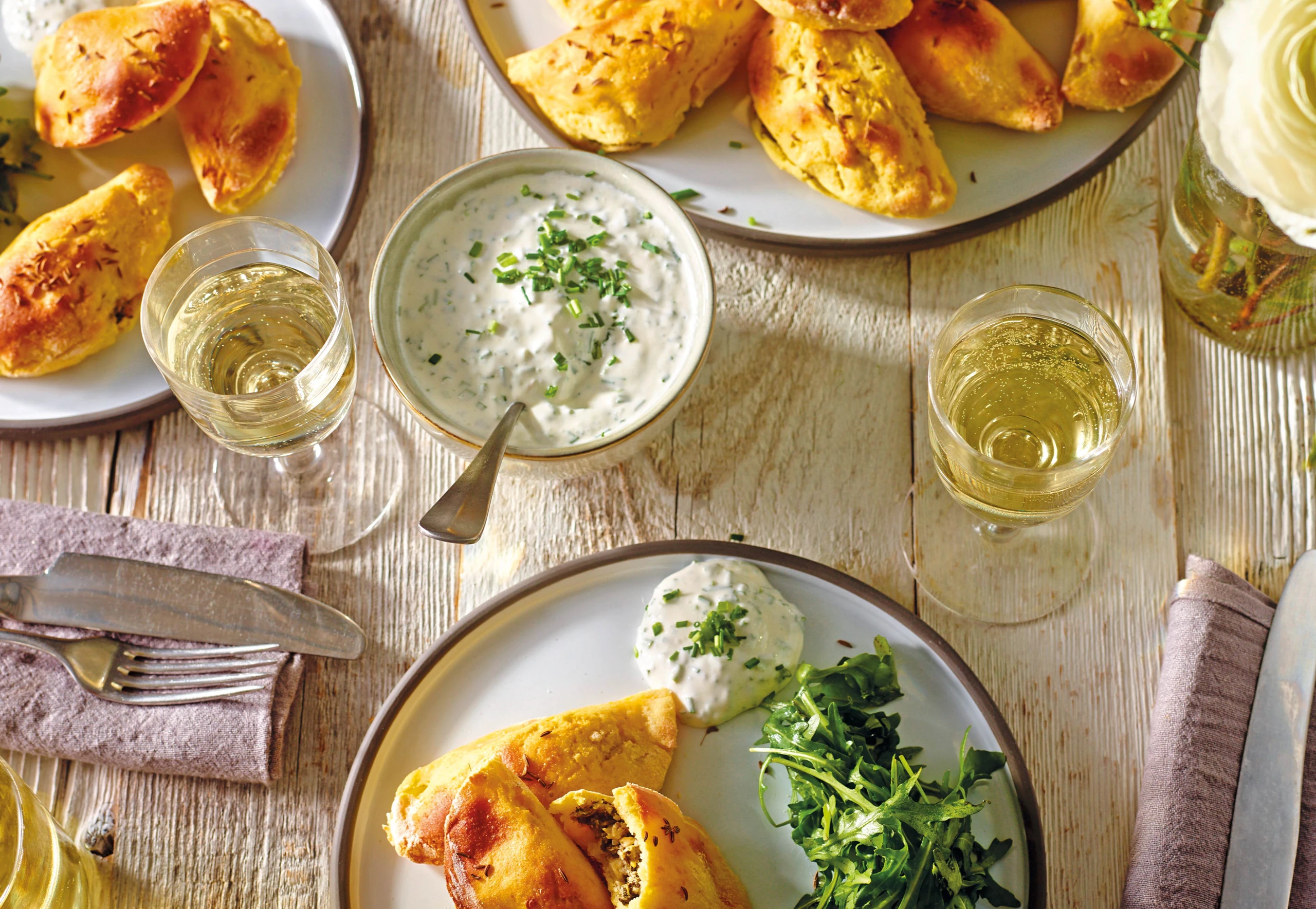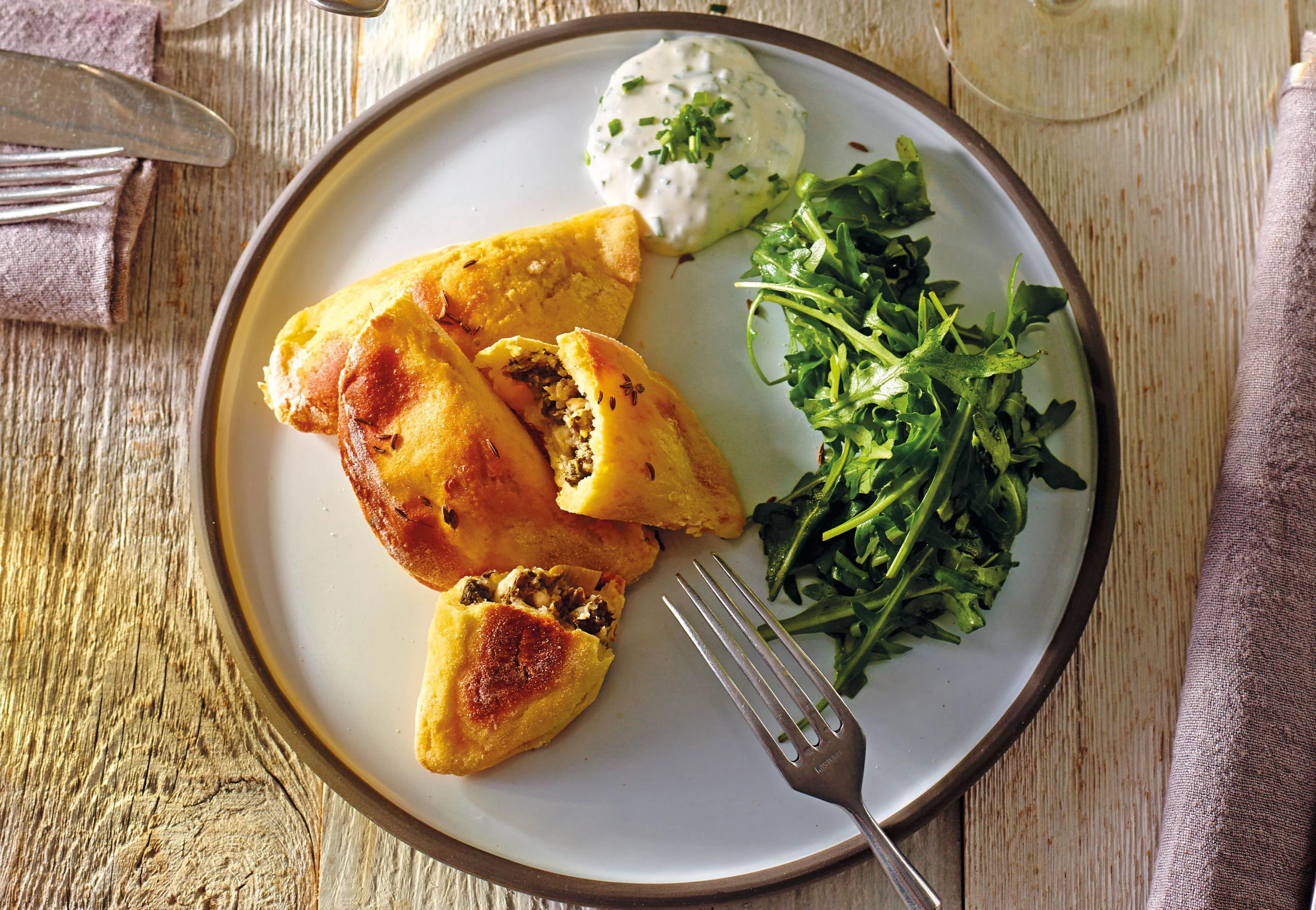 Erdäpfeltascherl mit Spinat-Frischkäsefülle
