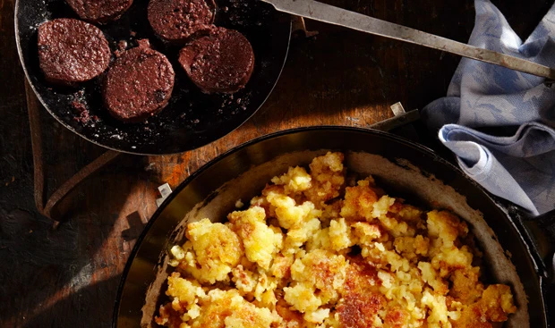 - Von der Wurst die Haut abziehen. Wurst in ca. 3 cm dicke Scheiben schneiden, mit wenig Mehl bestreuen und in heißem Öl beidseitig kurz anbraten. Erdäpfel-Derpl anrichten und mit der Wurst servieren. Als zusätzliche Beilage passt Sauerkraut.