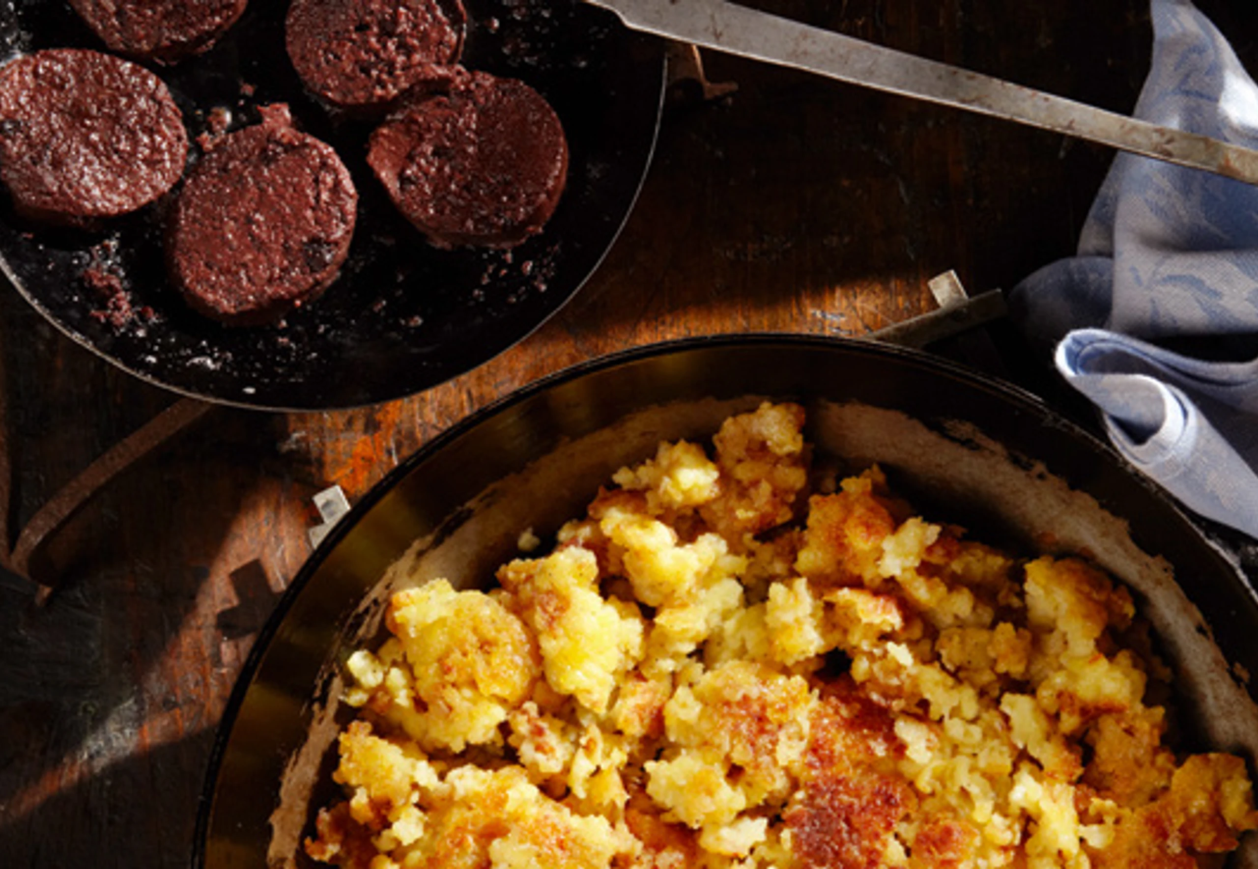 - Erdäpfel in Salzwasser weich kochen. Wasser abgießen und die Erdäpfel auskühlen lassen. Erdäpfel schälen und grob raspeln. Mehl über die Erdäpfel sieben und mit einer Gabel locker untermischen; nicht zu lange rühren, es soll kein Teig, sondern eine lockere, grießelige Mischung entstehen.