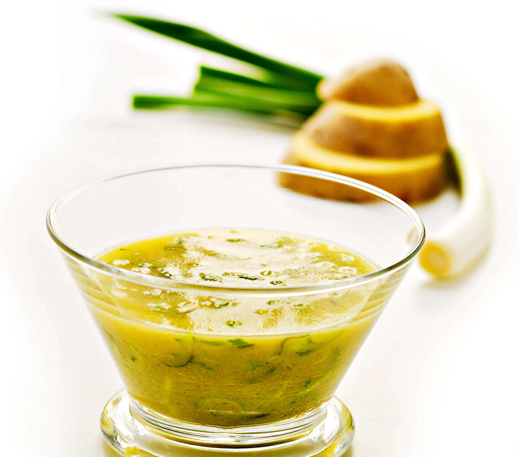 Erdapfel durch ein Sieb passieren, mit Senf, Essig und Öl verrühren. Erdäpfelfond zugeben, mit Salz und Pfeffer würzen.