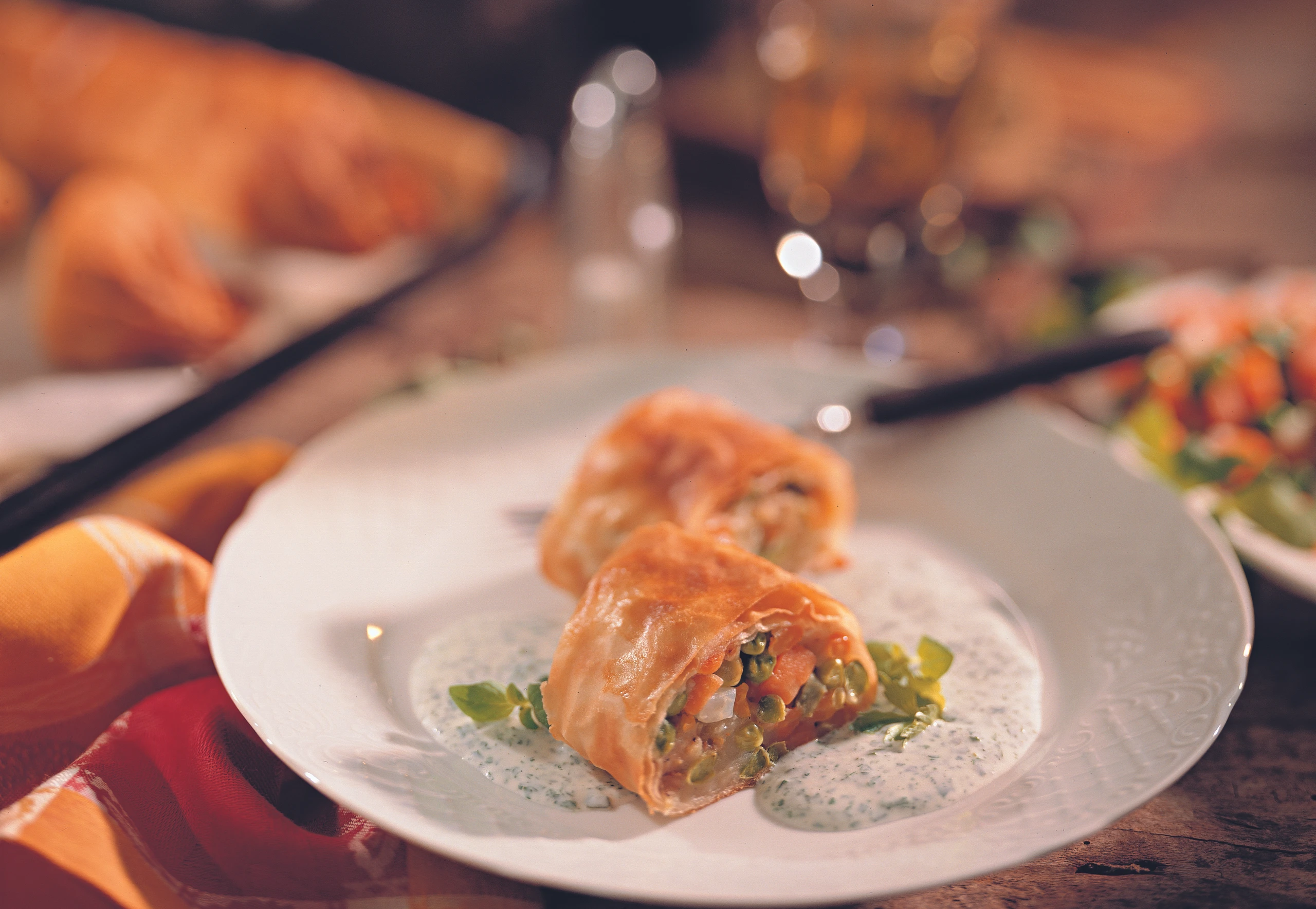 Erdäpfel-Gemüsestrudel mit Kräutersauce