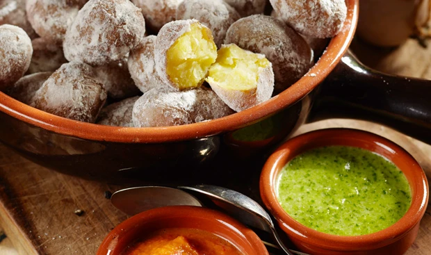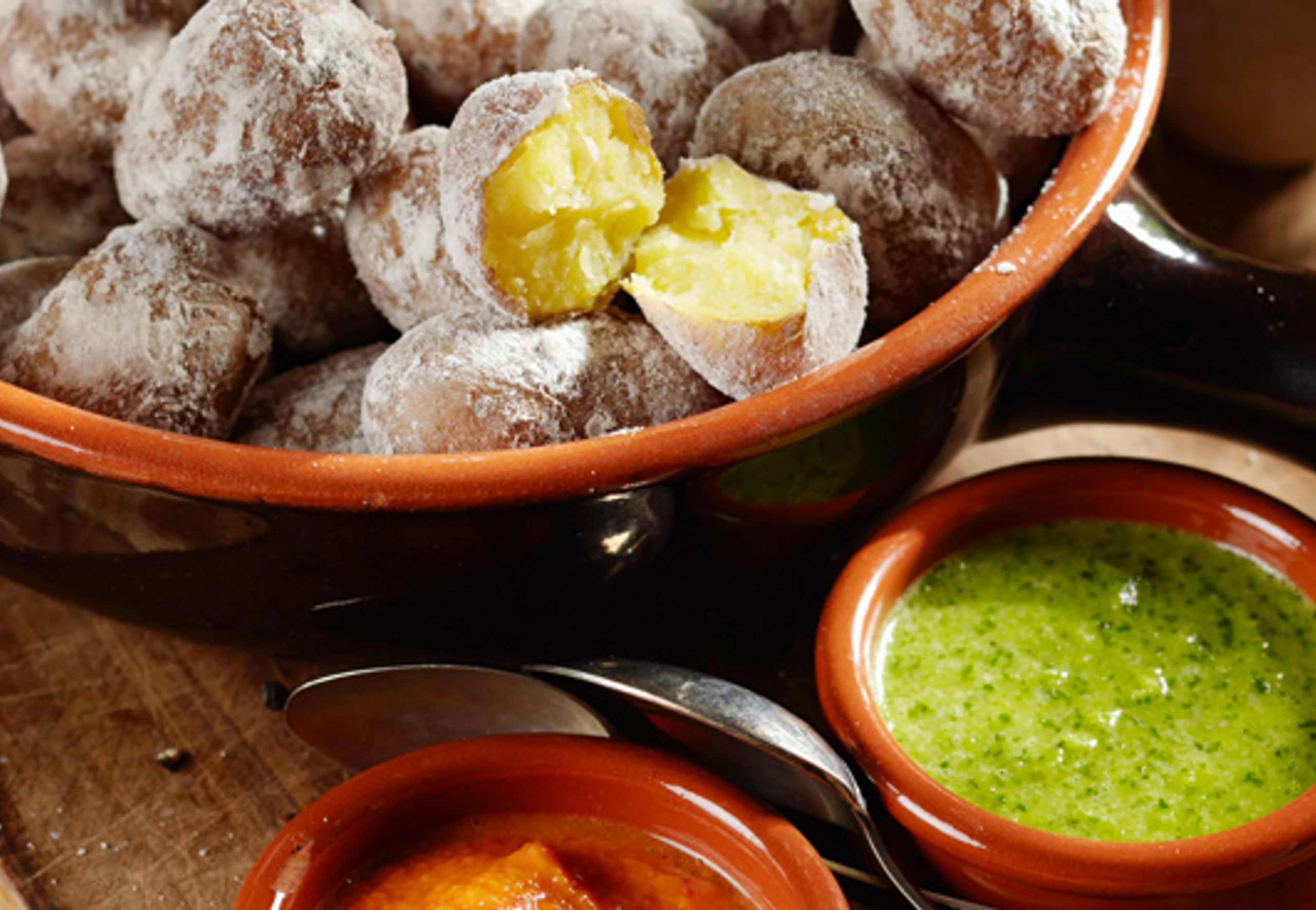 Erdäpfel mit scharfer und grüner Sauce