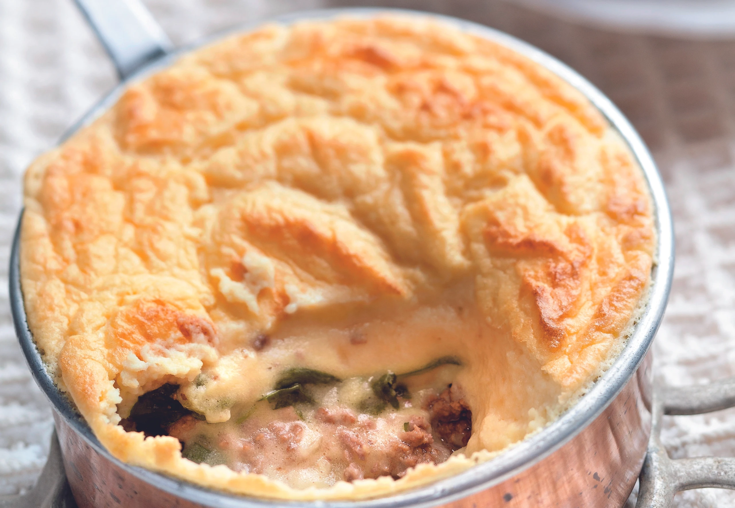Erdäpfelauflauf mit Faschiertem, Spinat und Bergkäse