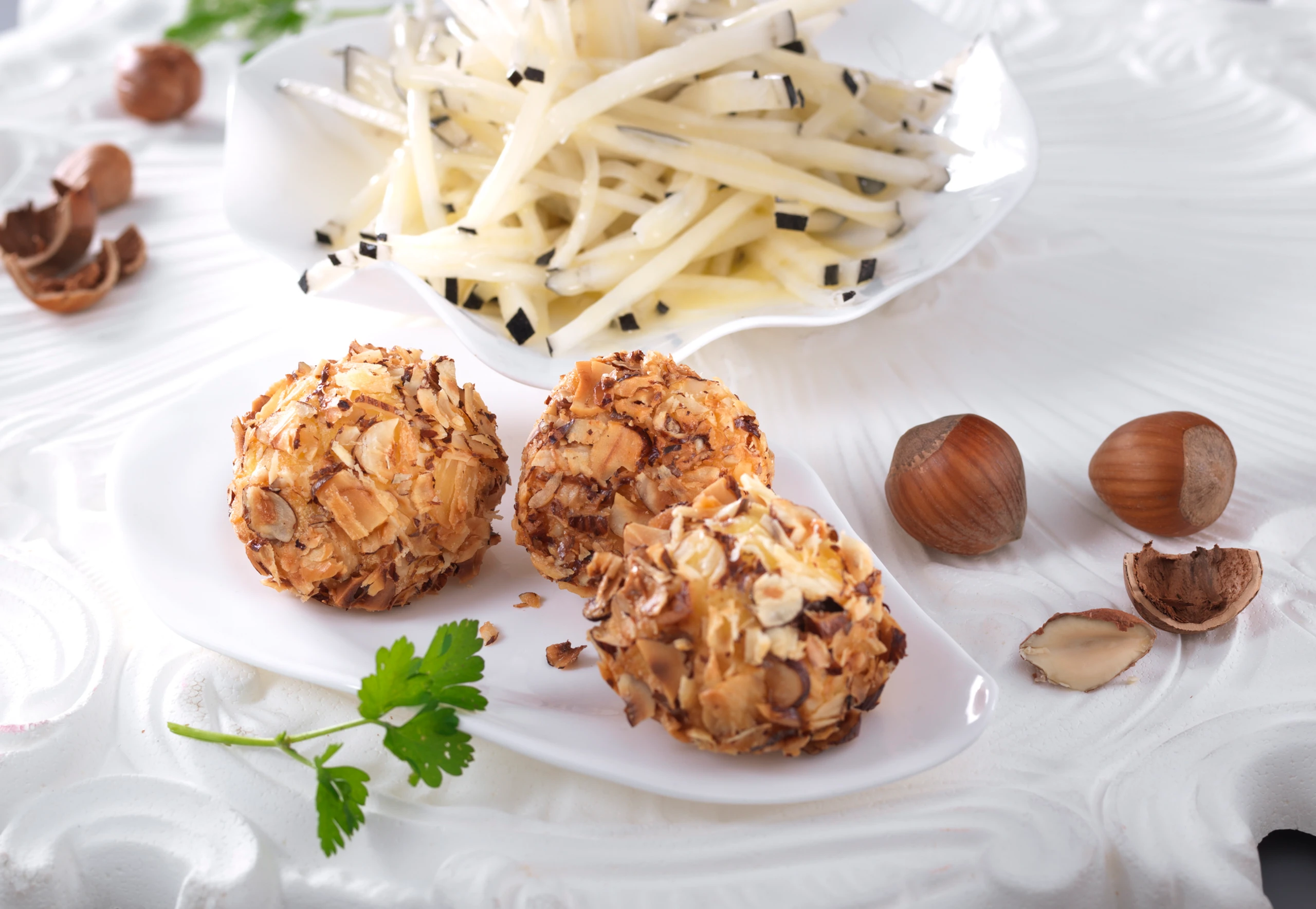Ca. 3 Finger hoch Öl erhitzen, Bällchen darin goldbraun backen (ca. 2 Minuten), herausheben und auf Küchenpapier abtropfen lassen. Bällchen mit dem Rettichsalat anrichten, eventuell mit Petersilie garniert servieren.