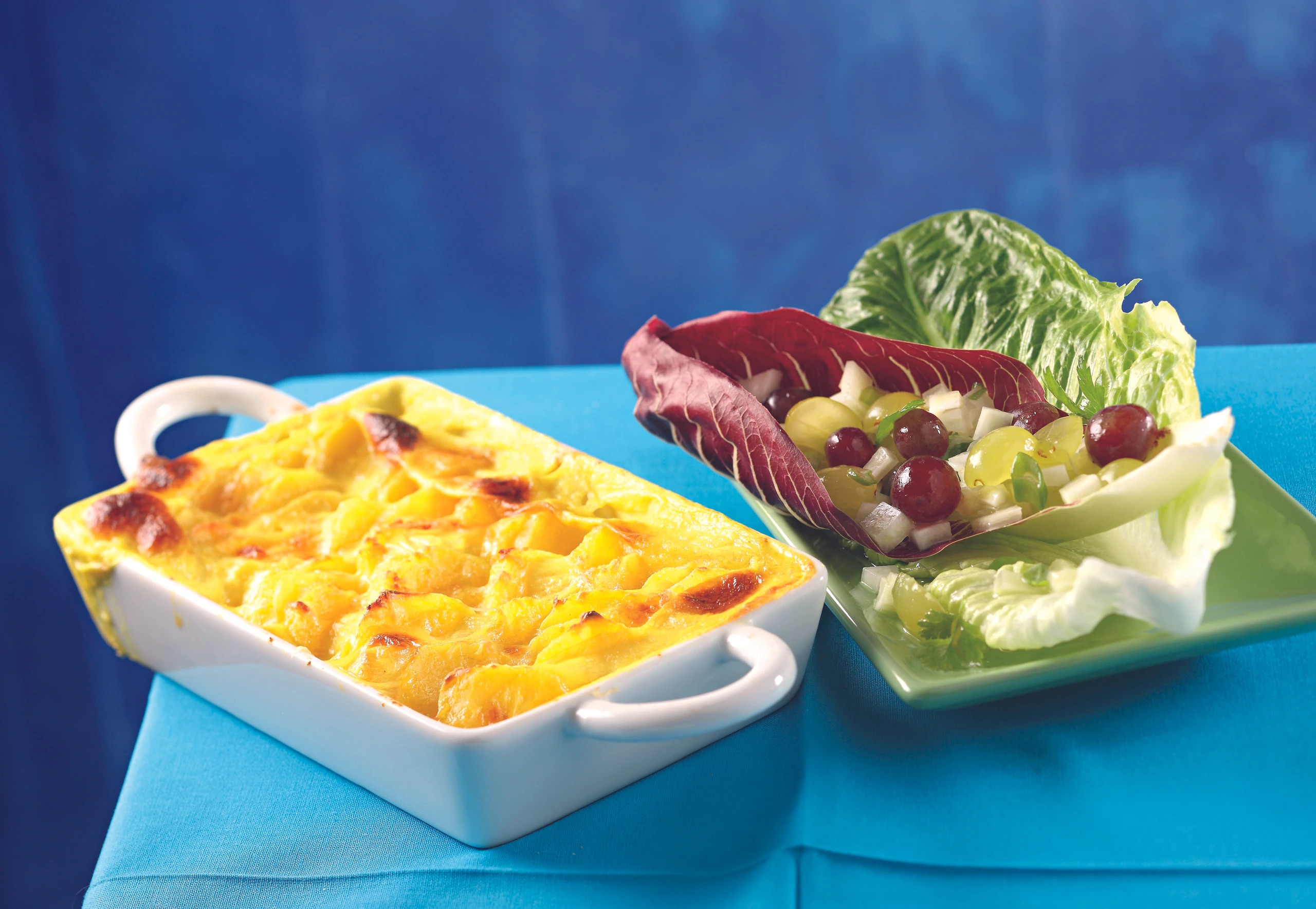Erdäpfelgratin mit Trauben-Fenchel-Salat