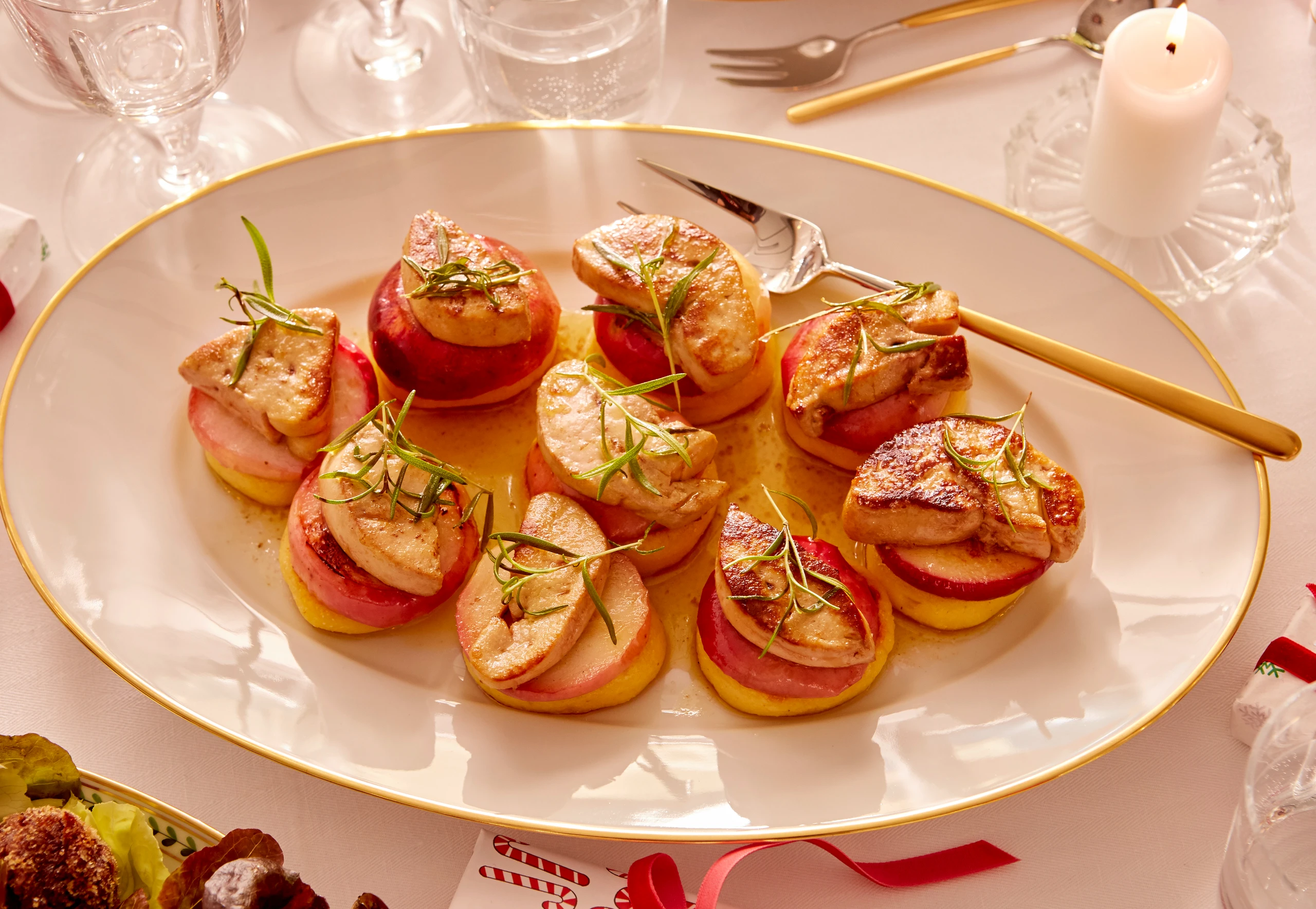 Erdäpfellaibchen mit Gänseleber und Äpfeln