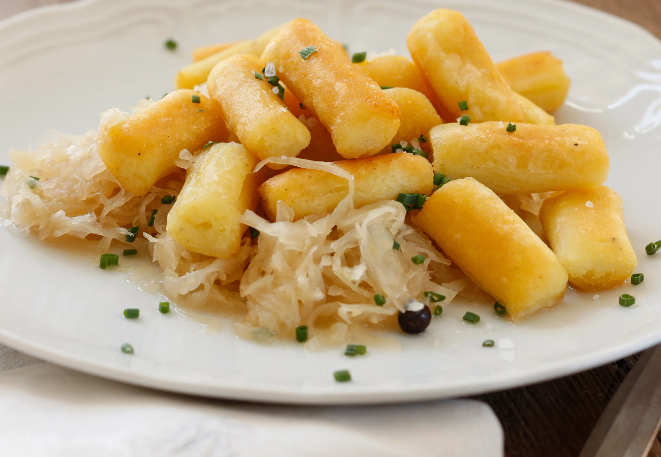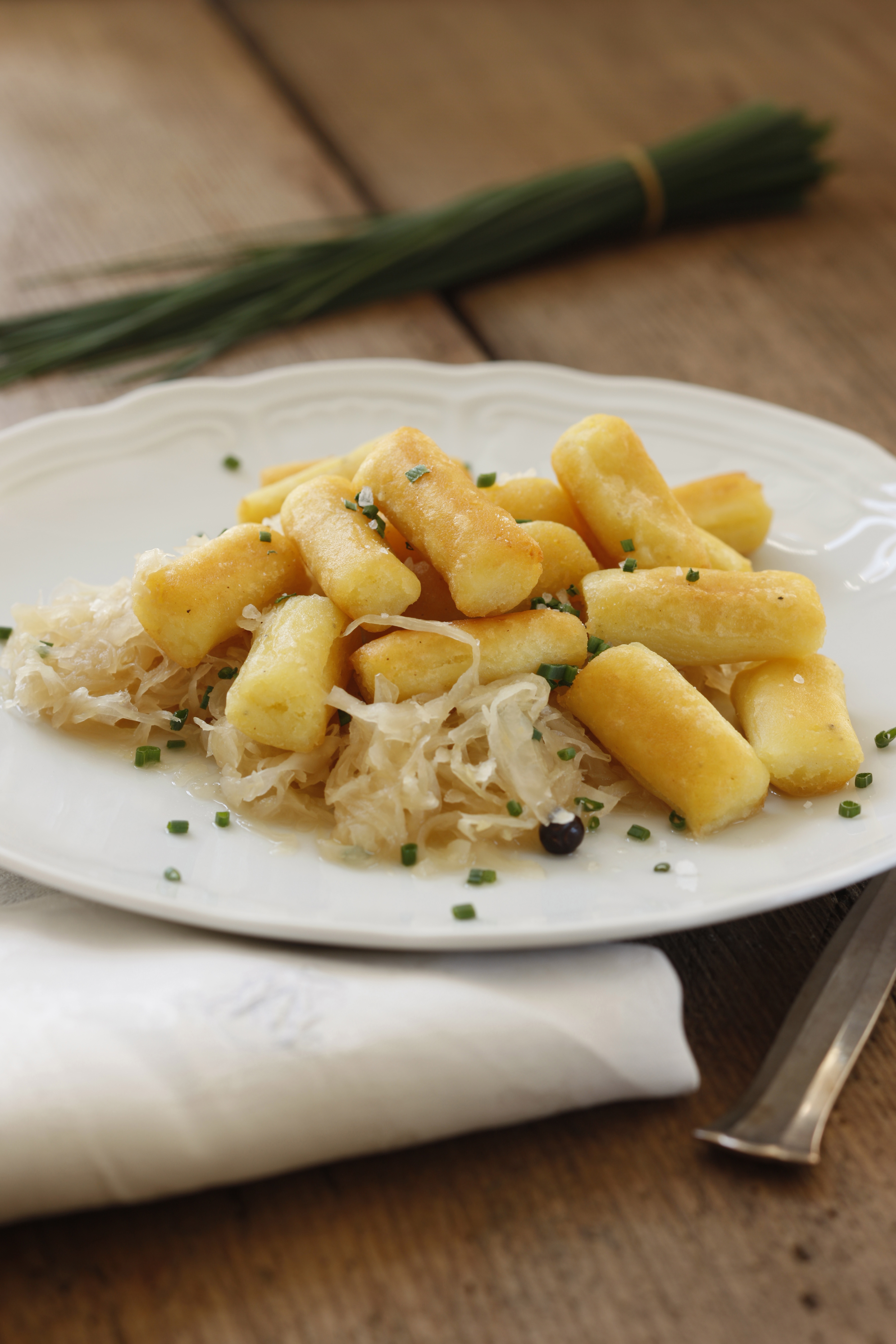 Erdäpfelnidei mit Sauerkraut