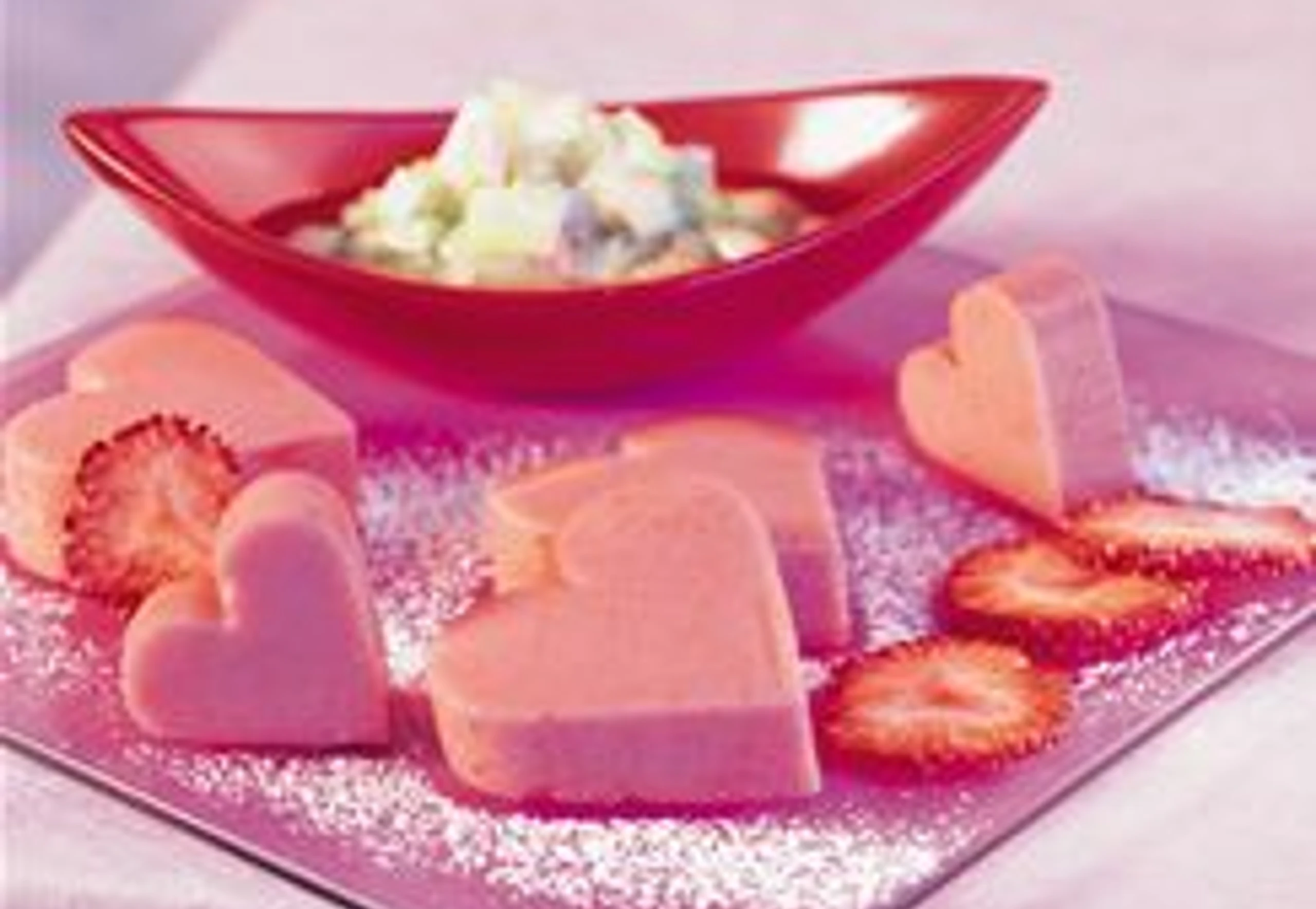 Erdbeer-Joghurt-Herzen mit Rhabarber-Holler-Sauce