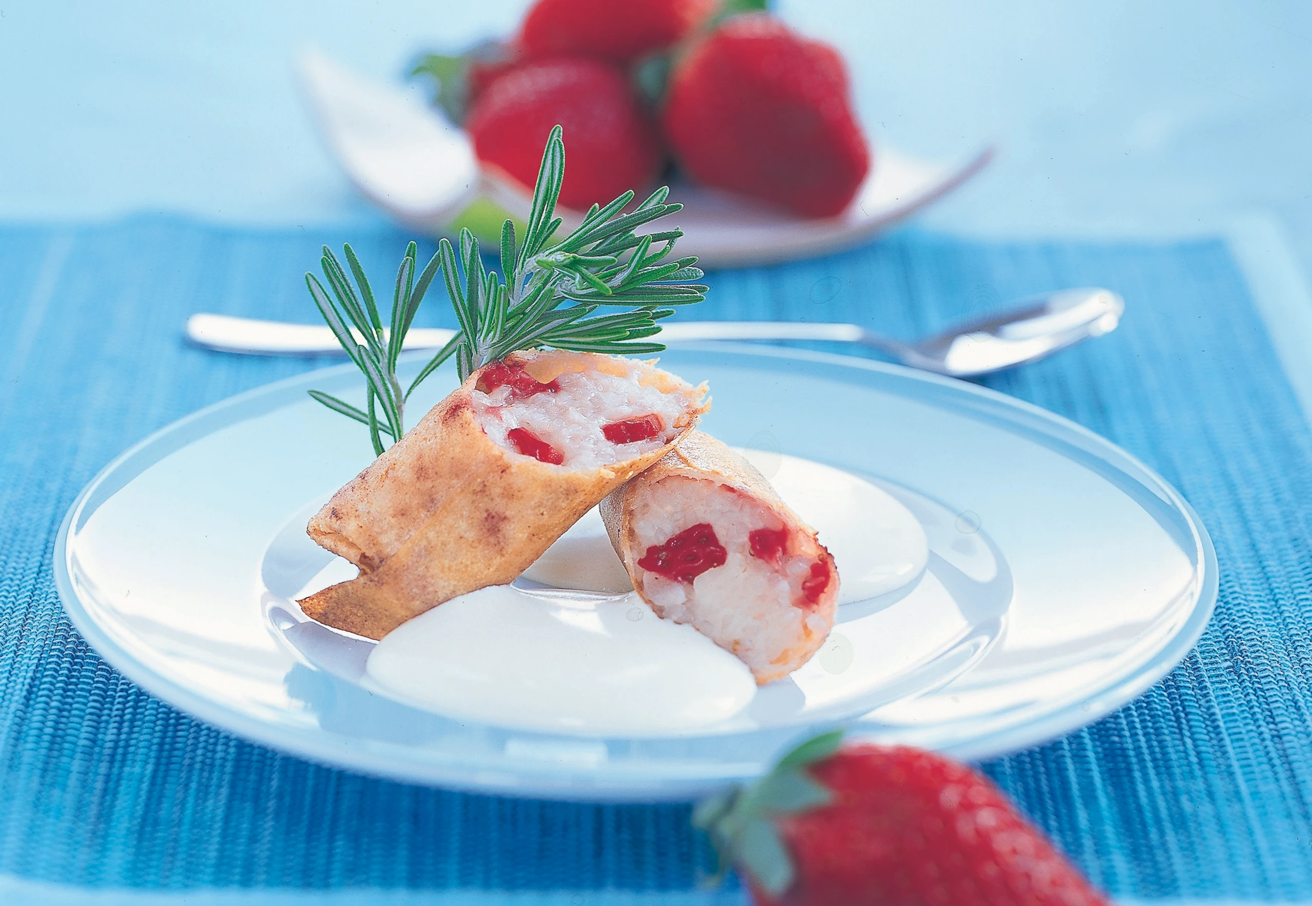Erdbeer-Milchreis-Cannelloni mit Rosmarin