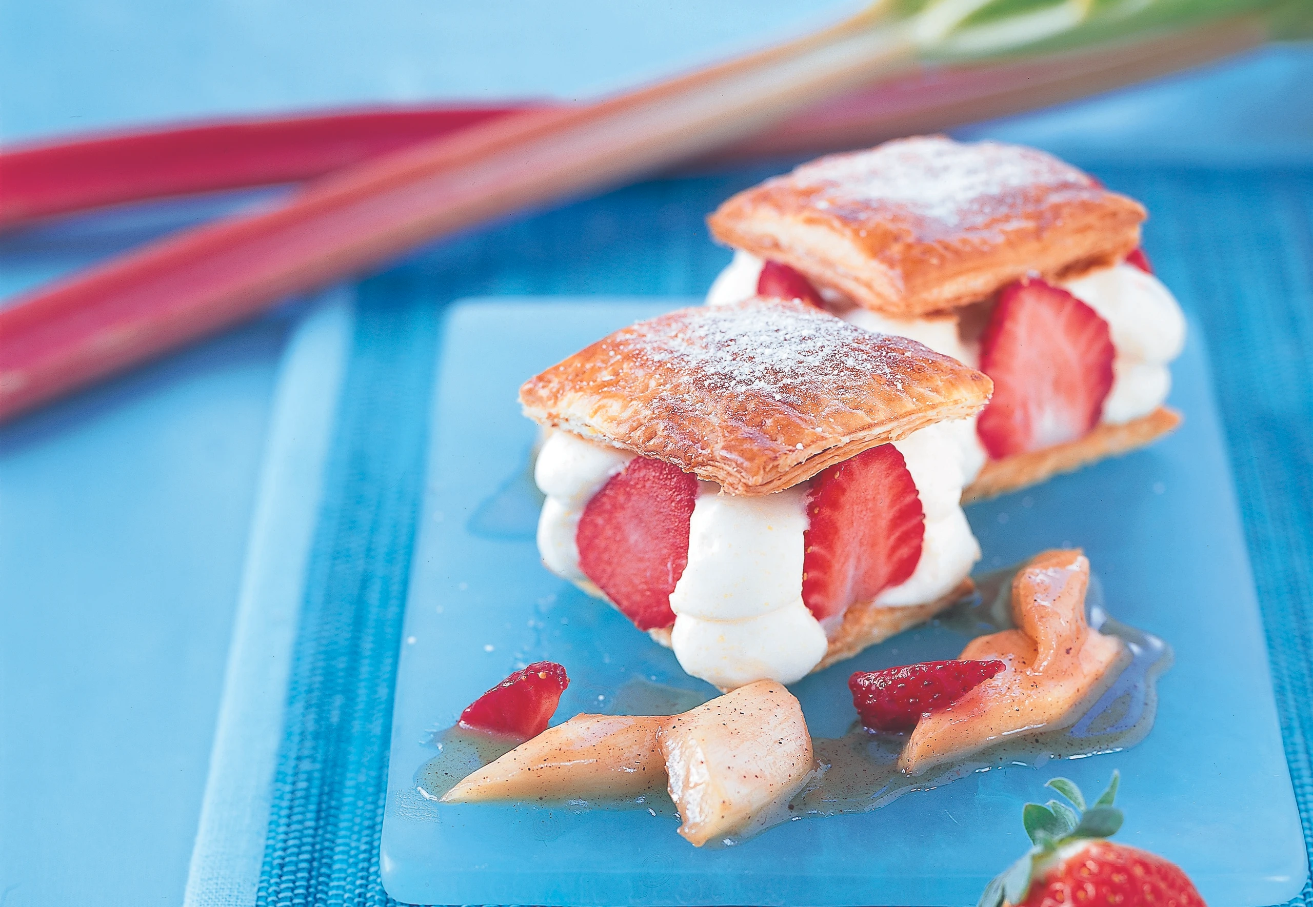 Erdbeer-Vanille-Türmchen mit Rhabarberragout