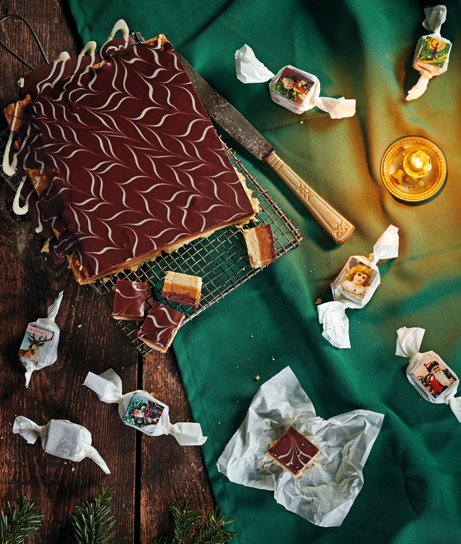 Konfekt für ca. 2 Stunden kalt stellen. In kleine Quadrate schneiden und im Kühlschrank aufbewahren.