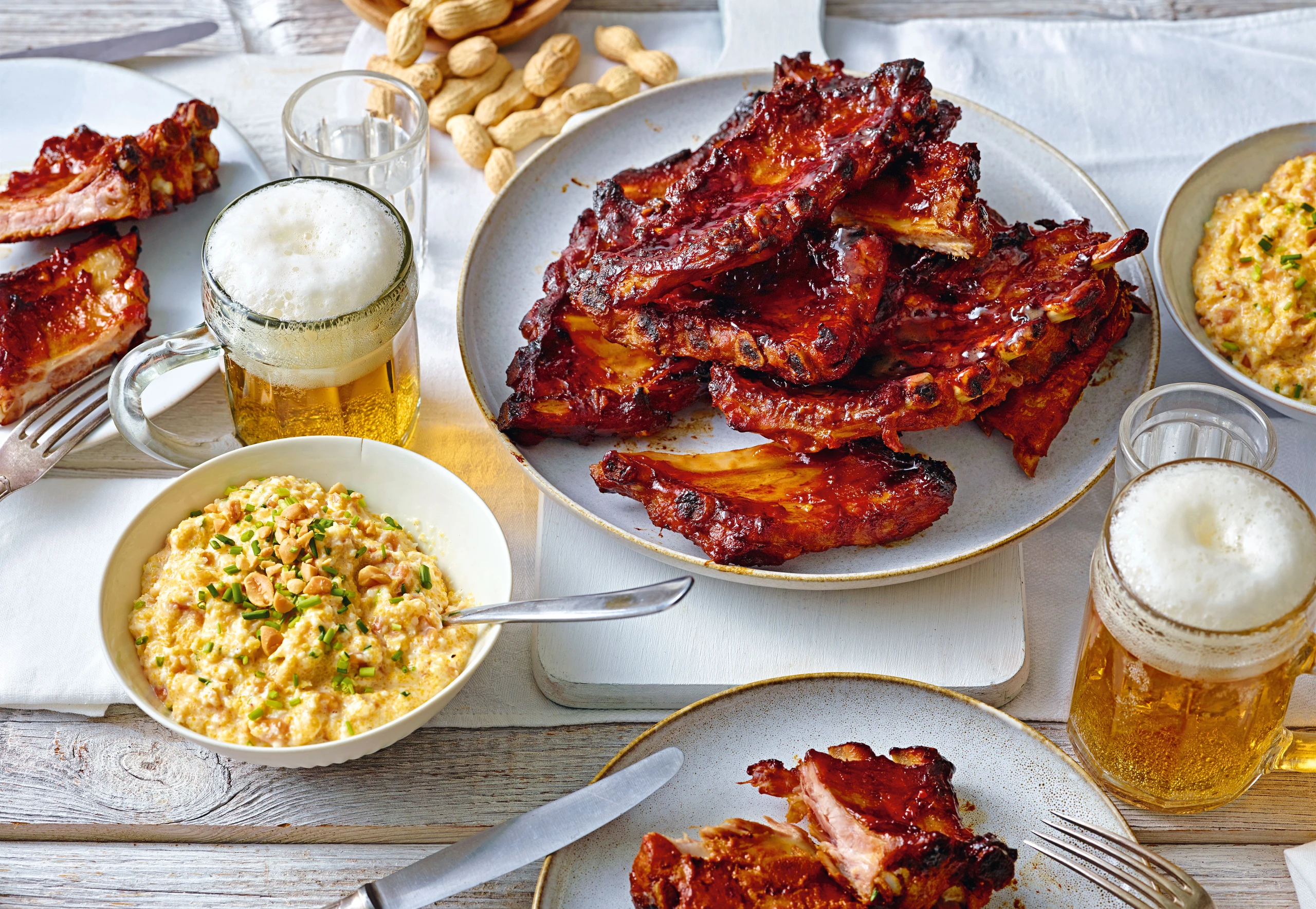 Rohr auf 200 °C vorheizen. Tiefes Backblech vorbereiten. Ripperl auf dem Backblech verteilen und mit der Marinade übergießen bzw. bestreichen. Ins Rohr (mittlere Schiene / Gitterrost) schieben und ca. 45 Minuten braten. Hitze auf 150 °C reduzieren und die Ripperl ca. 1 1/2 Stunden weiterbraten, dabei öfter wenden. Falls nötig mit wenig Wasser untergießen und gegen Ende der Garzeit mit Alufolie abdecken.