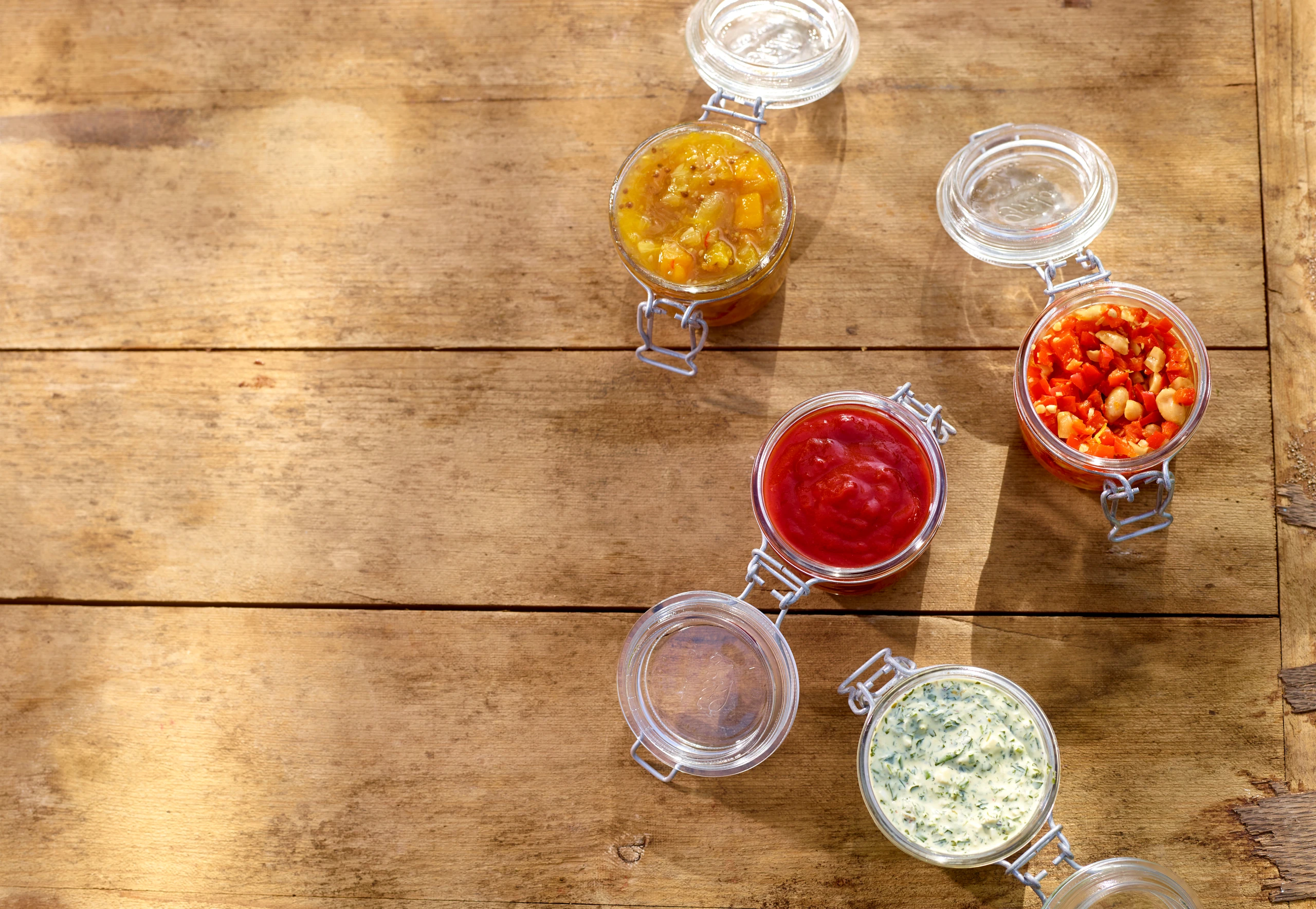 Zitronensaft, Balsamico und Zitronenschale verrühren und mit Salz und Pfeffer würzen. Paprika und Nüsse untermischen. Öl unter Rühren zugießen. Salsa ca. 20 Minuten ziehen lassen.