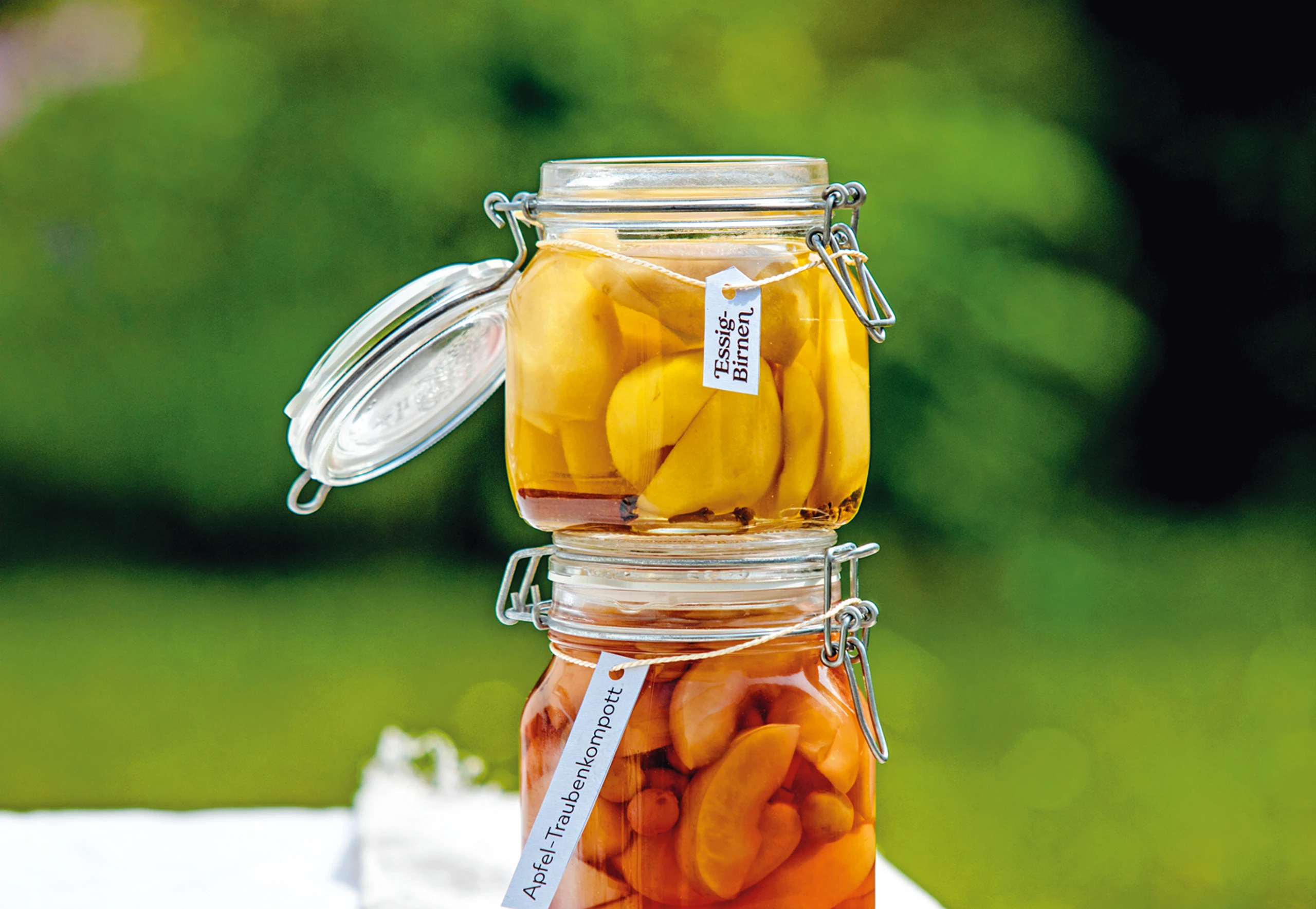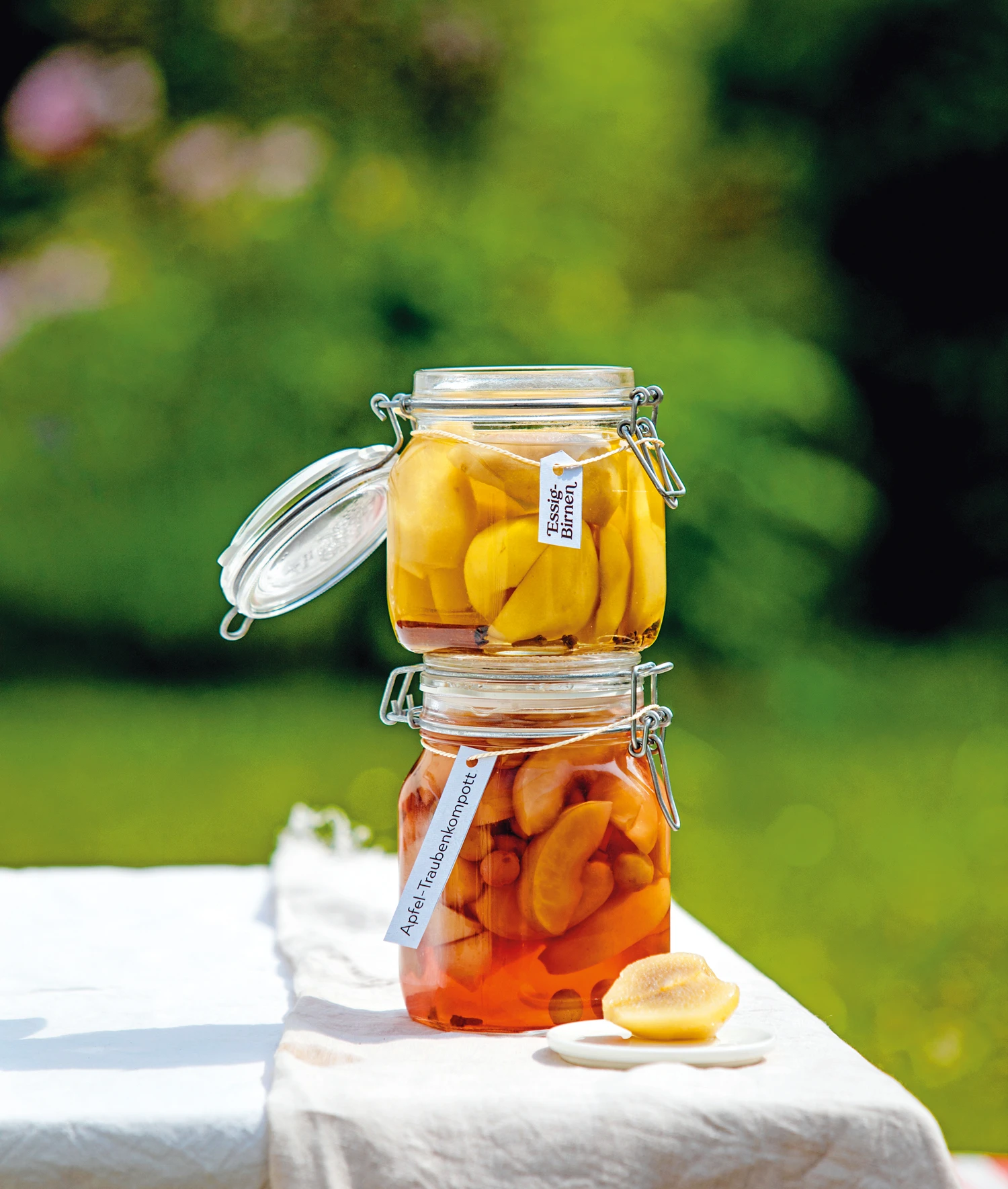 Birnen herausheben, in die Gläser schlichten und mit dem heißen Sud auffüllen. Gläser sofort verschließen.