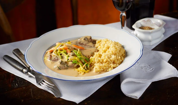 - Im Bratrückstand Zwiebel anschwitzen, mit Suppe ablöschen und aufkochen. Rostbraten und ausgetretenen Fleischsaft zugeben. Pfanne bis auf einen kleinen Spalt zudecken und das Fleisch bei schwacher Hitze ca. 40 Minuten weich dünsten.
