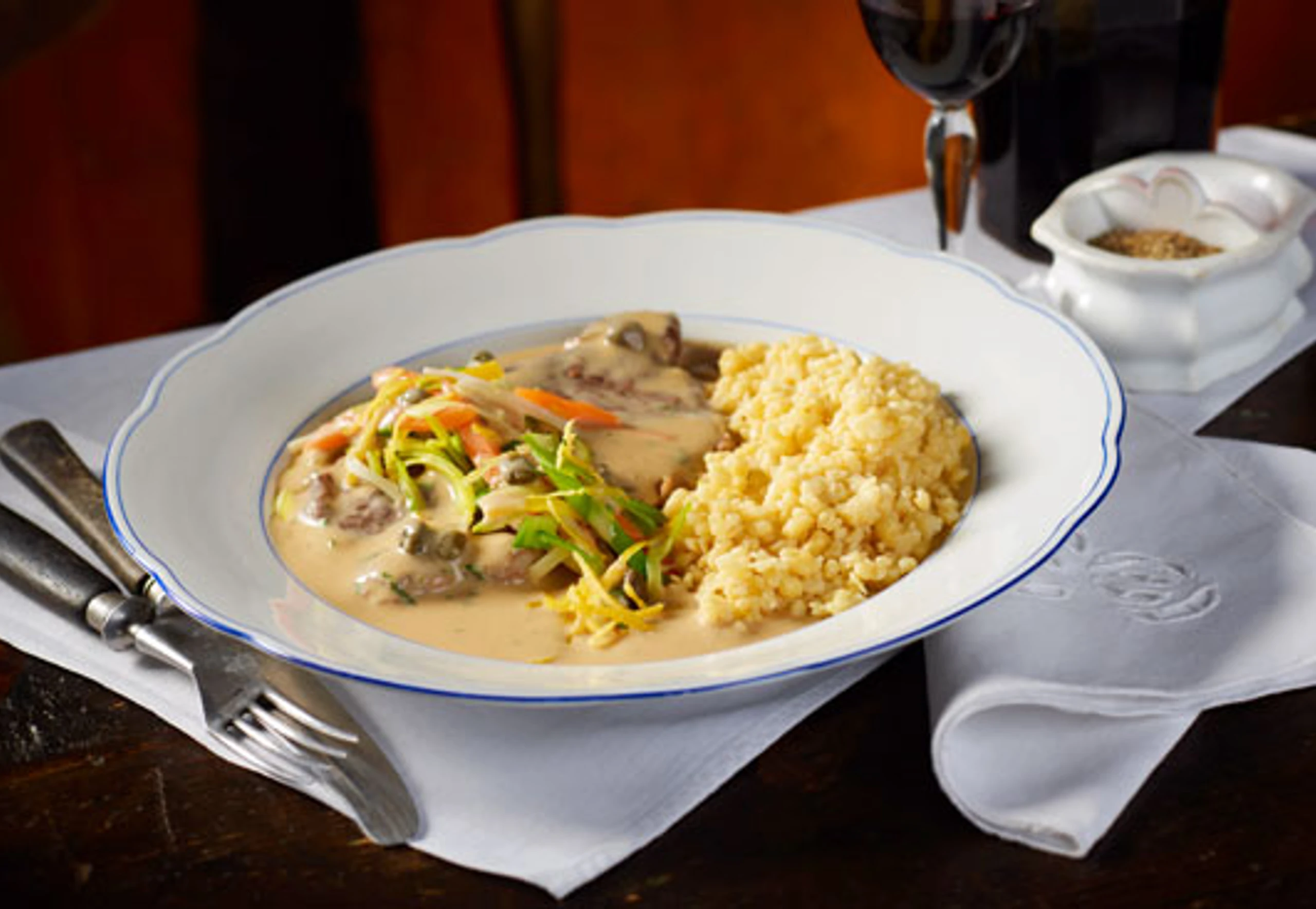 - Rostbraten aus der Pfanne heben und beiseite stellen. Sauerrahm mit Mehl verquirlen und in die Sauce rühren. Sauce bei schwacher Hitze ca. 5 Minuten köcheln und mit Salz und Pfeffer abschmecken. Schnittlauch fein schneiden. Gemüse, Kapern, Schnittlauch und Zitronenschalen in die Sauce rühren, Rostbraten einlegen und erwärmen. Fleisch mit der Sauce und dem Gemüse anrichten.