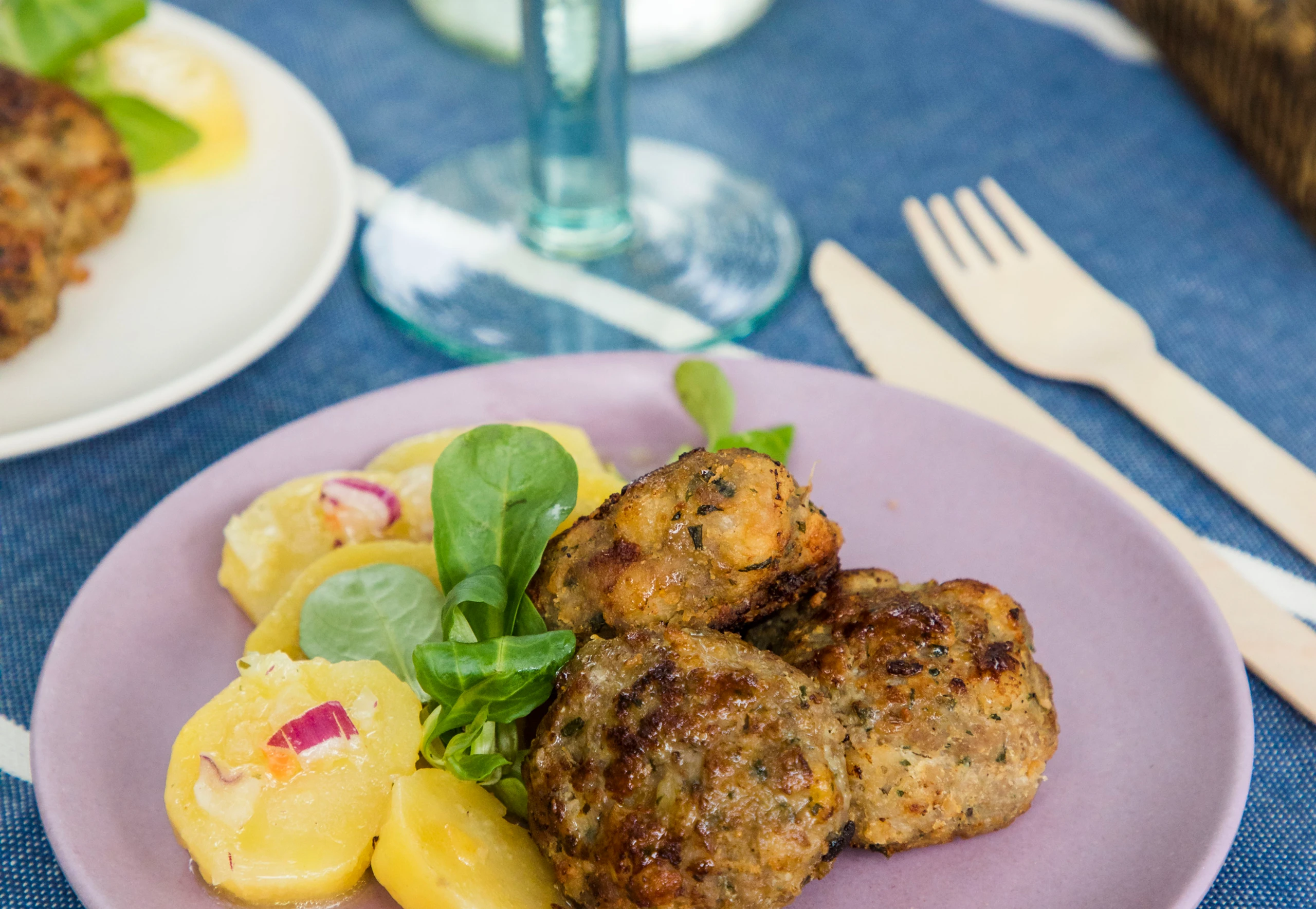 Faschierte Laibchen mit Erdäpfel-Vogerlsalat