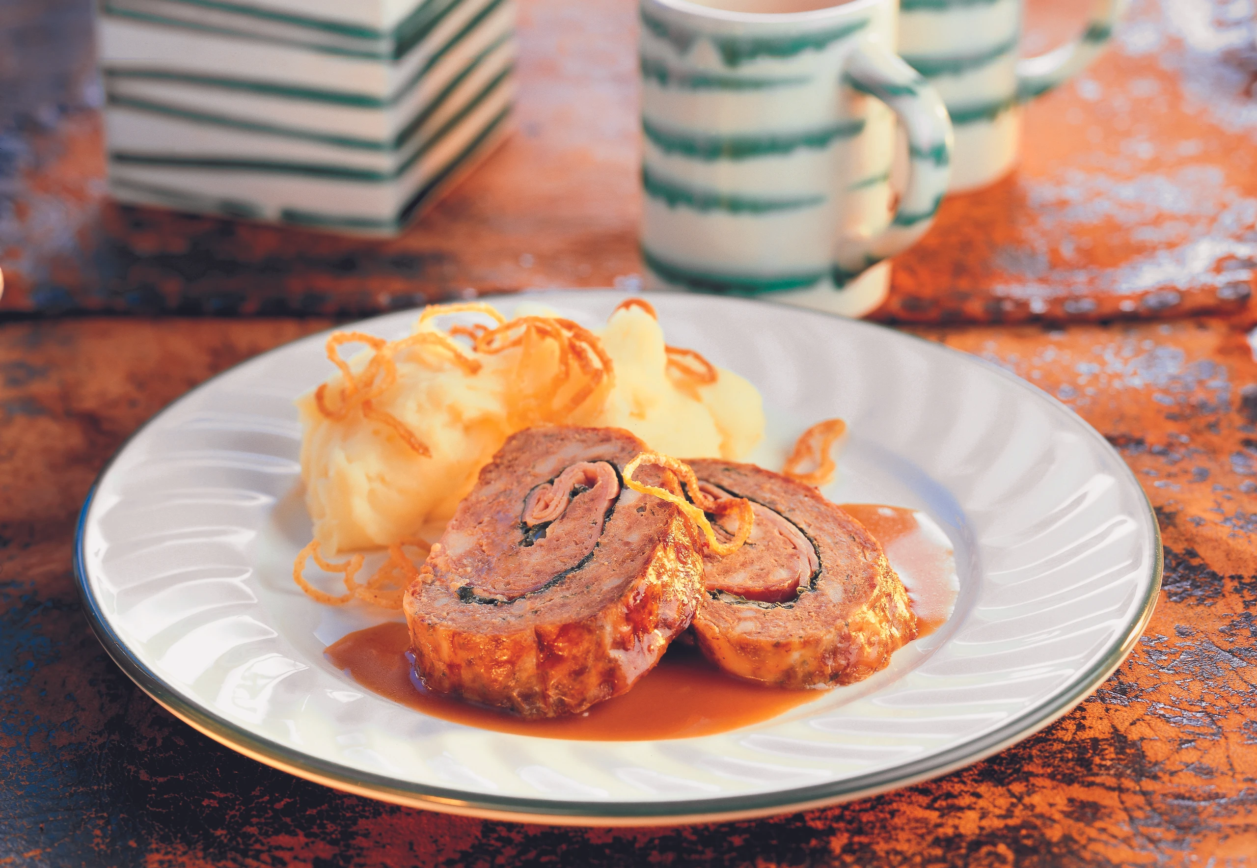 Gefüllter faschierter Braten mit Erdäpfelpüree
