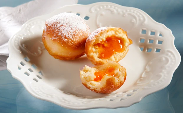 - Marmelade mit dem Rum glatt rühren, in einen Dressiersack mit Krapfentülle oder in ein Papierstanitzel füllen, in die Krapfen spritzen. Krapfen mit Zucker bestreuen.