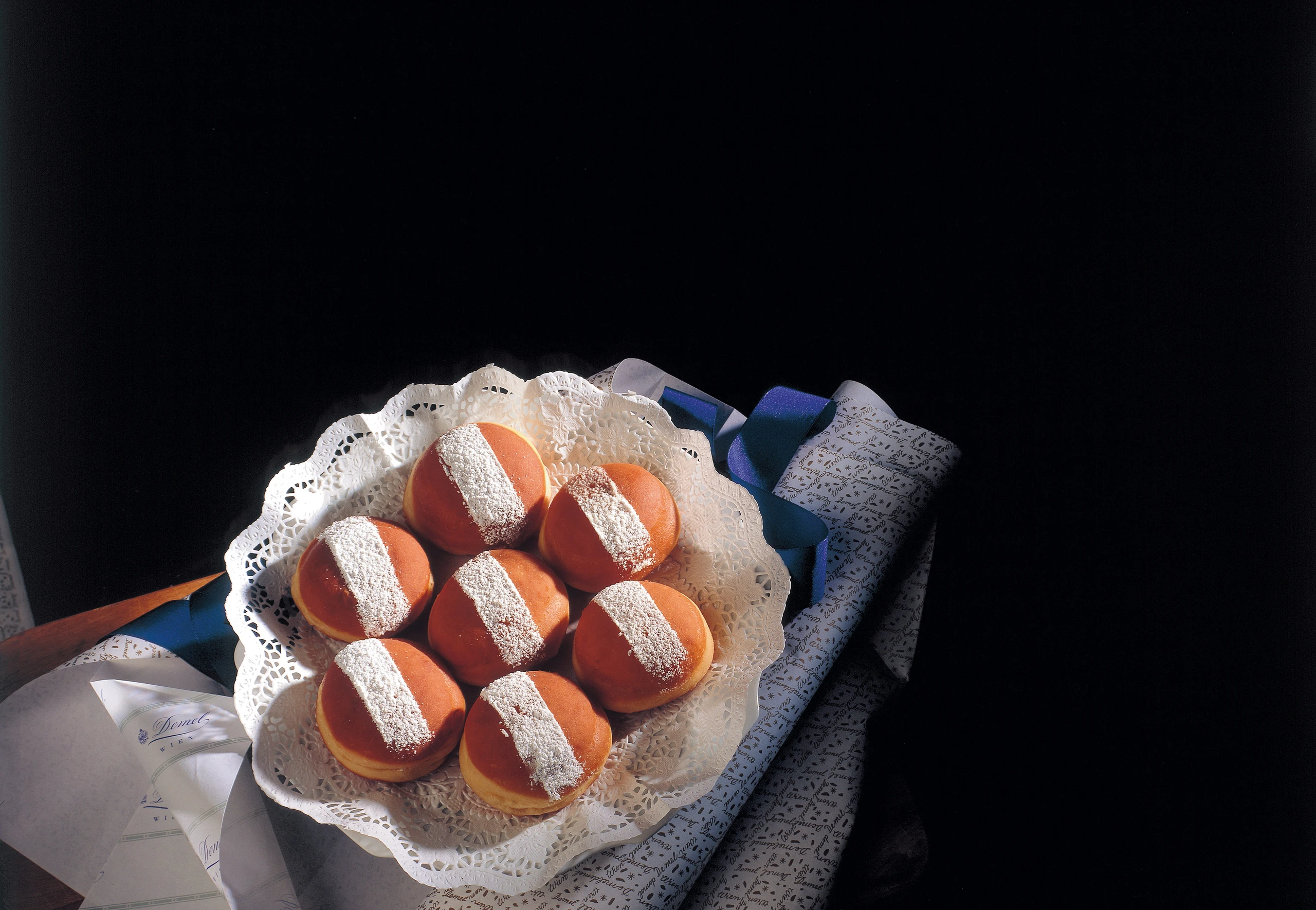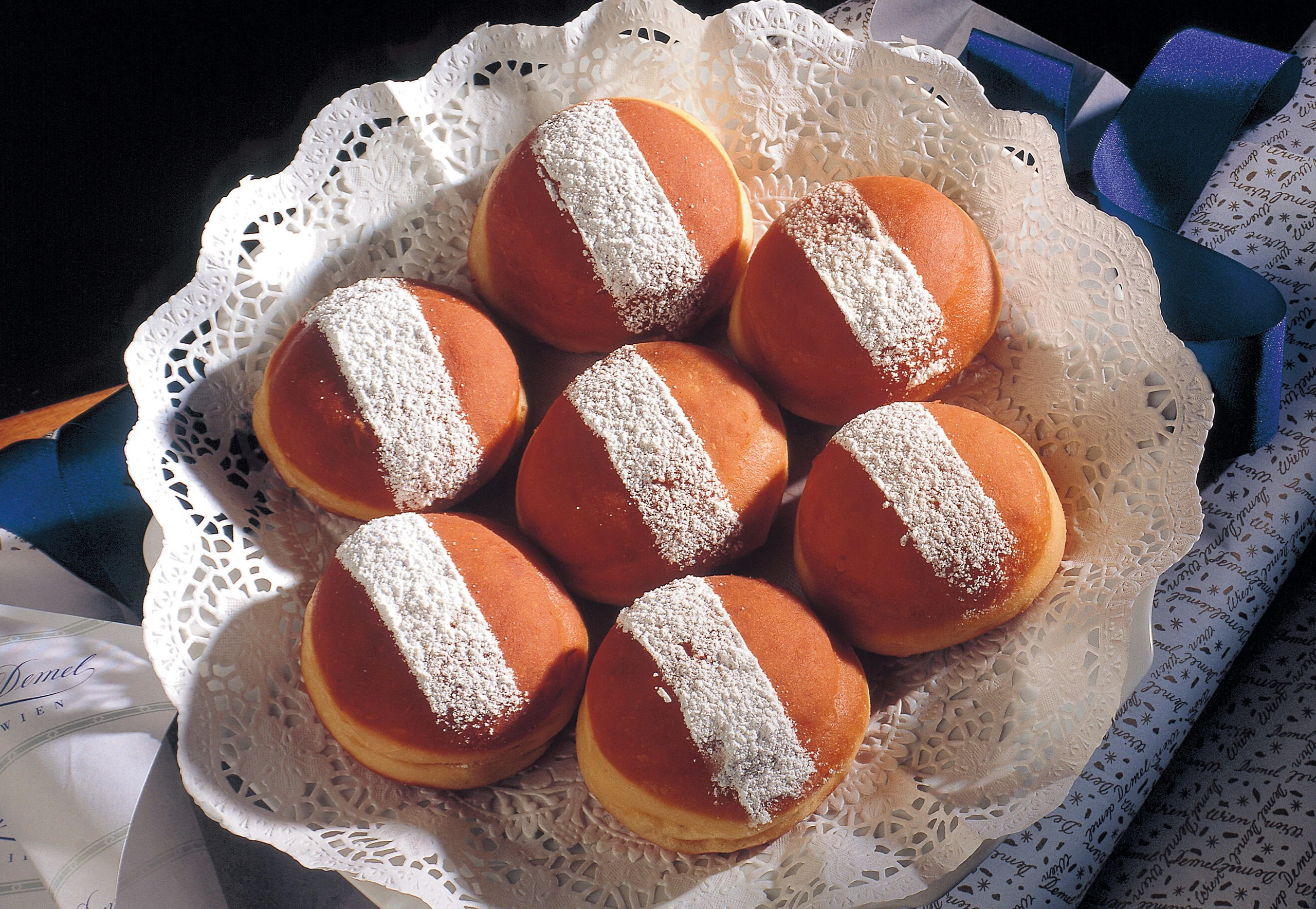 Vier bis fünf Fingerhoch Backfett auf mittlere Temperatur erhitzen (ca. 160 °C). Krapfen mit der Oberseite nach unten einlegen und zugedeckt 2–3 Minuten anbacken. Krapfen wenden, ca. 3 Minuten offen fertigbacken, mit einem Siebschöpfer aus dem Fett heben und auf mehreren Lagen Küchenpapier gut abtropfen lassen. Vor dem Servieren mit Puderzucker bestreuen.