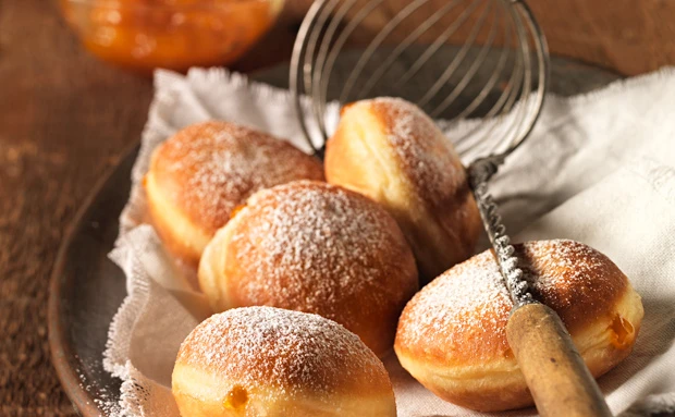 - Marmelade mit dem Rum glatt rühren, in einen Dressiersack mit Krapfentülle oder in ein Papierstanitzel füllen, in die Krapfen spritzen. Krapfen mit Zucker bestreuen.