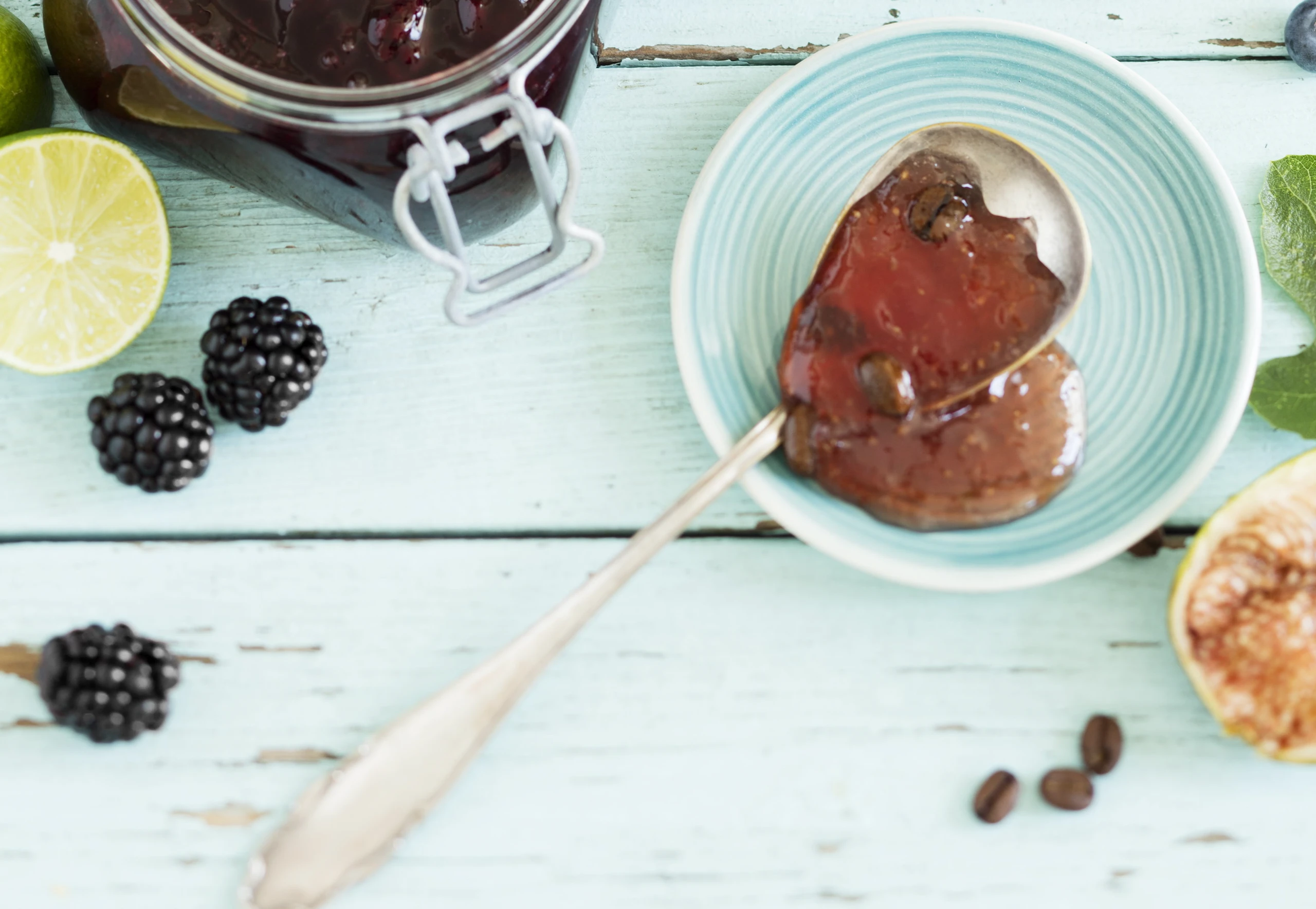 Feigen schälen, sechsteln, mit Gelierzucker mischen und ca. 5 Minuten ziehen lassen. Kaffeebohnen zu den Feigen geben, Mischung unter Rühren (Achtung, brennt leicht an!) ca. 8 Minuten köcheln.